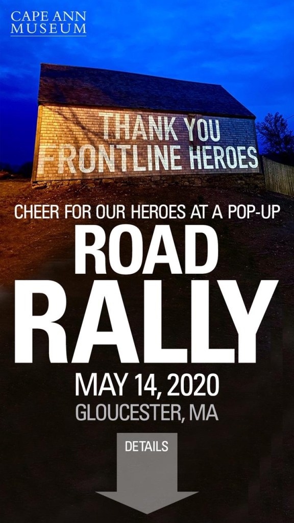 During this procession, cars will pass by the “In Gratitude” installation at Cape Ann Museum Green twice. Each time, passengers are encouraged to show their support with cheers and words of thanks for our frontline heroes. These cheers will be recorded and become a part of the permanent art that is created from this temporary exhibition.
