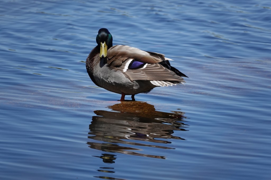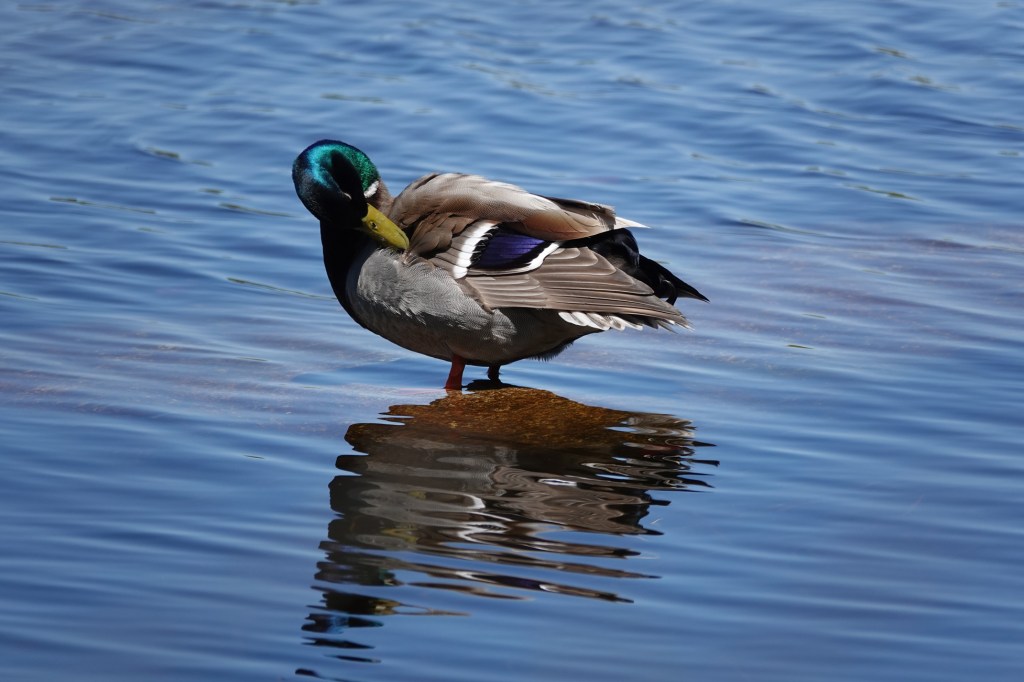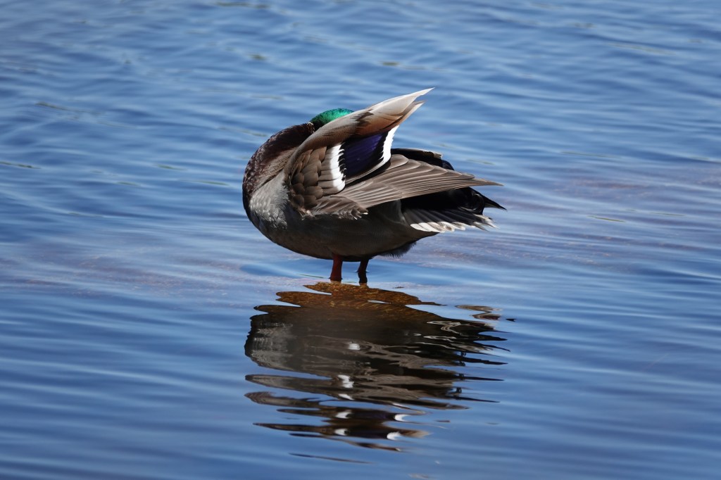 Our neighbor alerted us to a developing drama in the backyard marsh. A VERY young fawn had apparently fallen into a furrow out in the marsh. The doe was looking around as if for help. We were debating our options when the doe appeared to rescue the fawn using her mouth to pull it to firmer ground. The fawn was rewarded with a bath and milk from Mom before it teetered off following the doe. We got to witness this miracle of nature right in our backyard! The doe appeared a short time later to be fairly unconcerned.