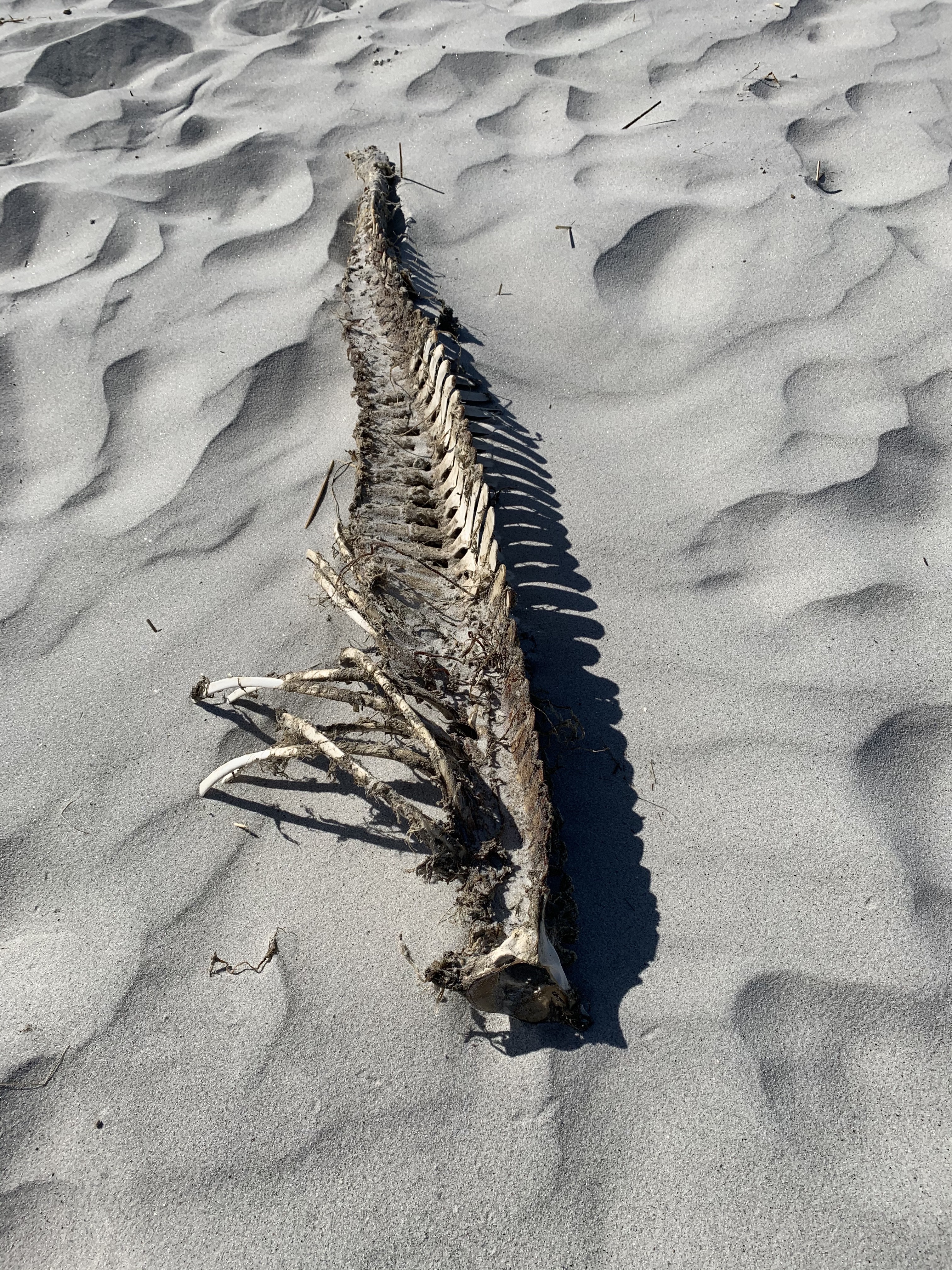 S Pawson shares what they believe to be a bottle nose dolphinโs remains on Coffinโs Beach