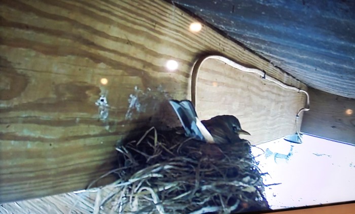 Rick set up a webcam so not to disturb her and the future babies.ย Love watching from a distance.