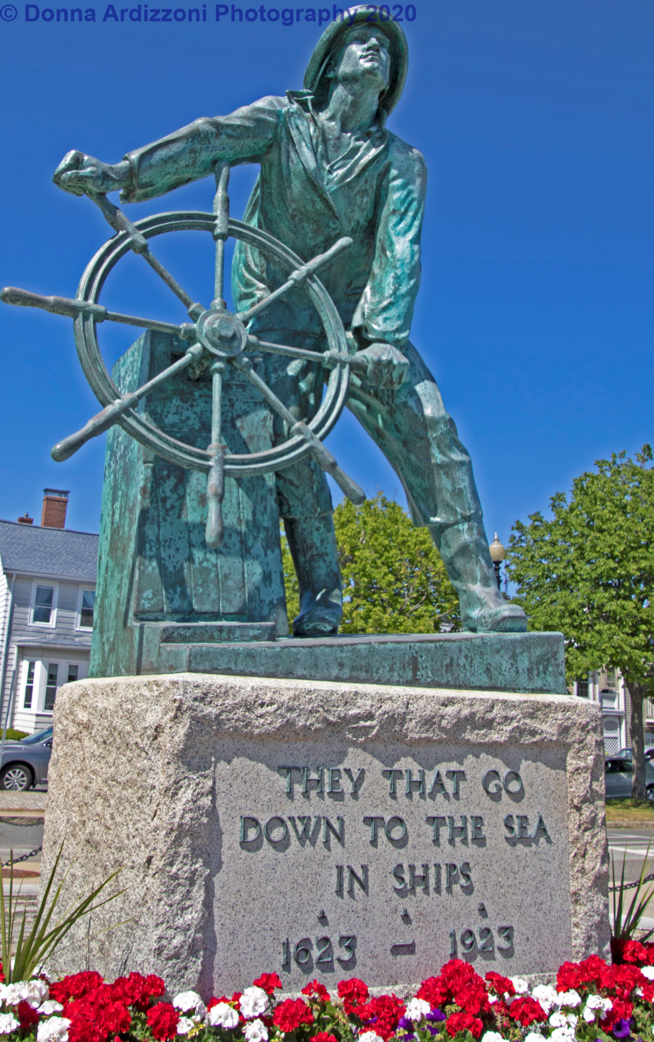 Our Man at the Wheel overlooking beautiful Gloucester Harbor.