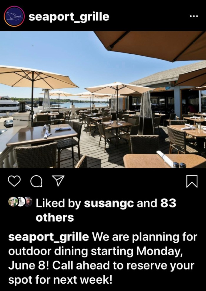 At Seaport Grille We’re Planning On Outdoor Dining Starting Monday June 8th