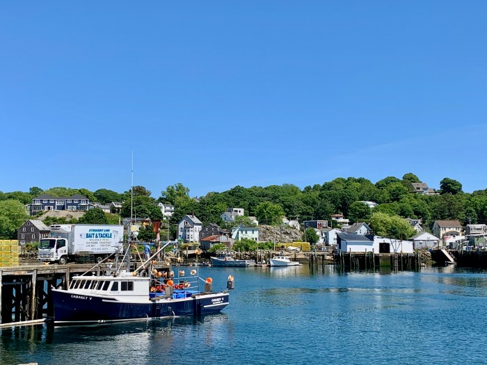 The pretty awesome Cabaret V is baiting up with Capt. Joe and Sons in the background. Things are always bustling on the working waterfront.