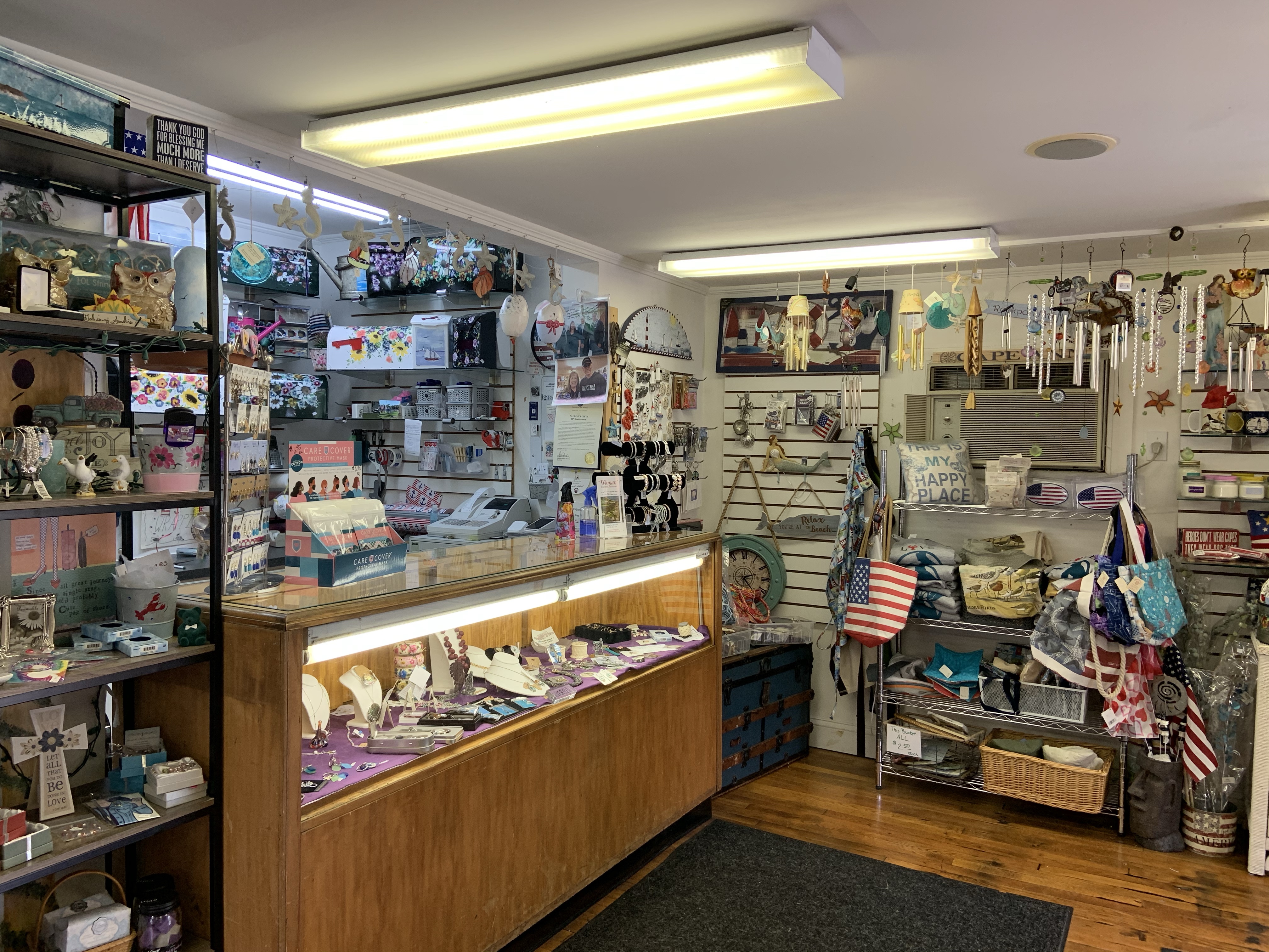 Pauline’s Gifts open and ready. Pauline’s supplied new flags for Magnolia Pier!
