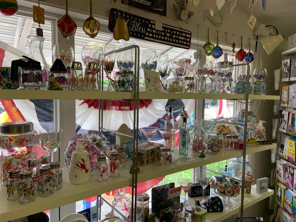 We had a delightful stop at Pauline’s Gifts on Essex Ave yesterday. We got to visit with our friend Pauline and get some goodies with my gift certificate! Safe environment, masks worn by all ! Pauline is hoping to do a “Drunken Painting “ event soon, so keep your eyes and ears open! Thanks Pauline. It’s a great shop for gifts and other practical household items. I got a baby gift for our first grandchild. Lobsters seemed an appropriate theme.