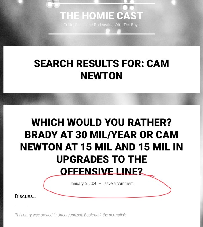 I believe I had this Cam Newton call back on January 6, 2020