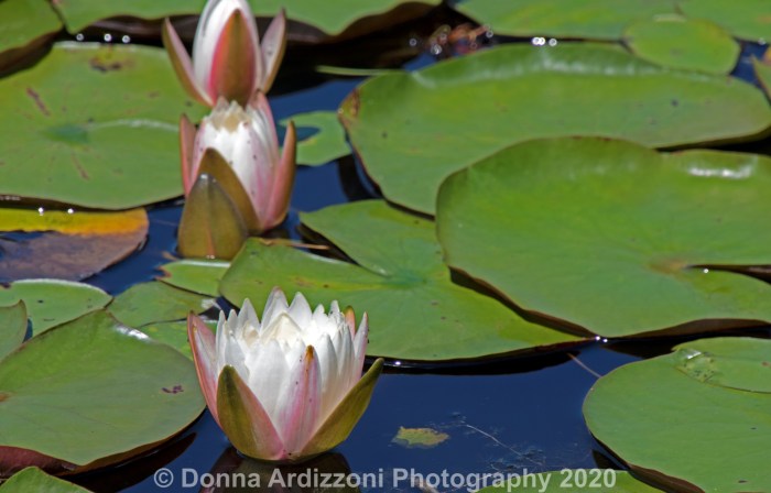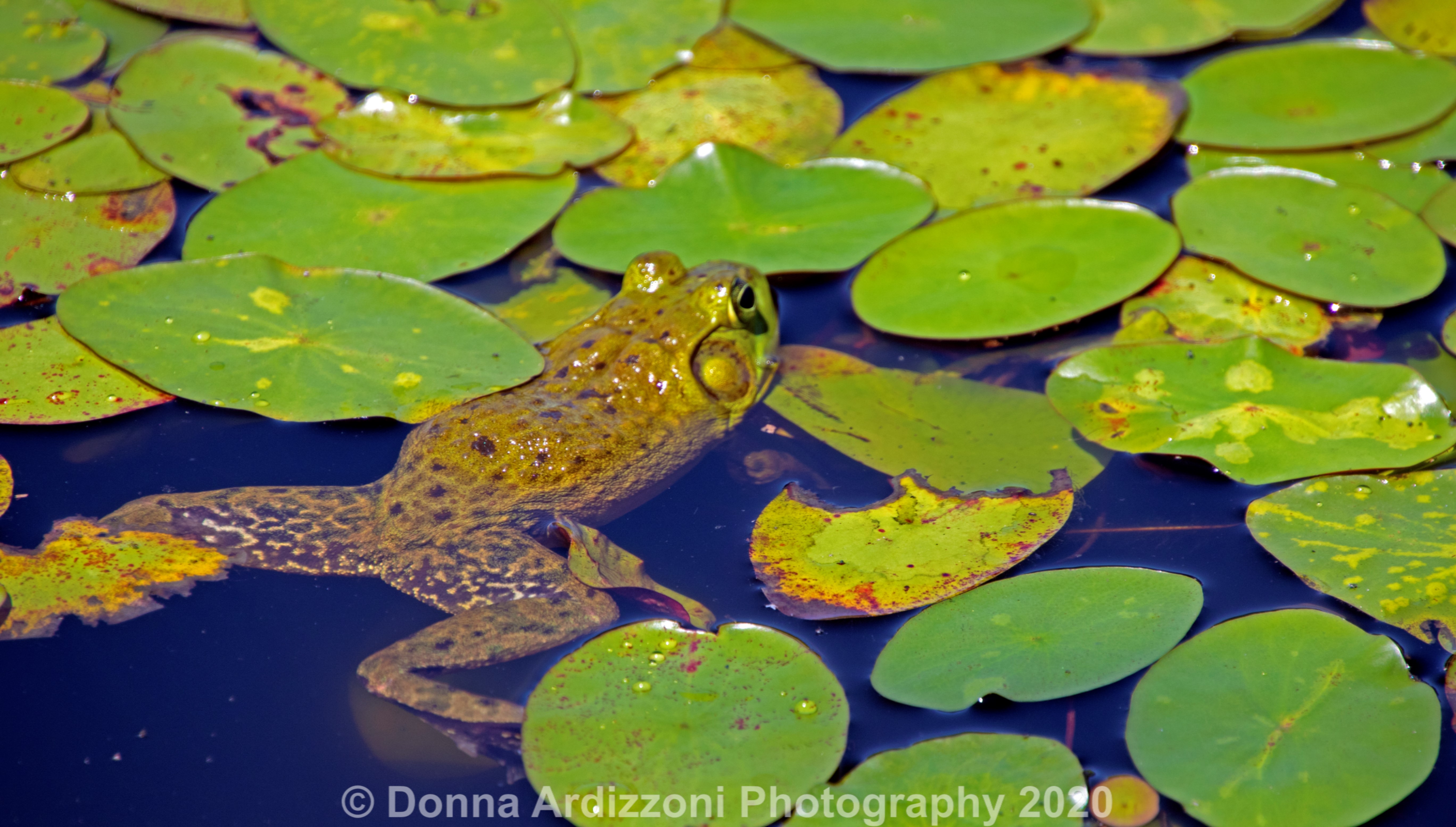 Beautiful lily pads and a cute frog in the pond.