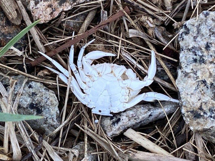 This sun-bleached crab and its intricate exoskeleton are oddly beautiful. Thank you to Paul Horovitz for sharing this photo from a walk through the Annisquam with us.