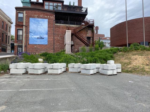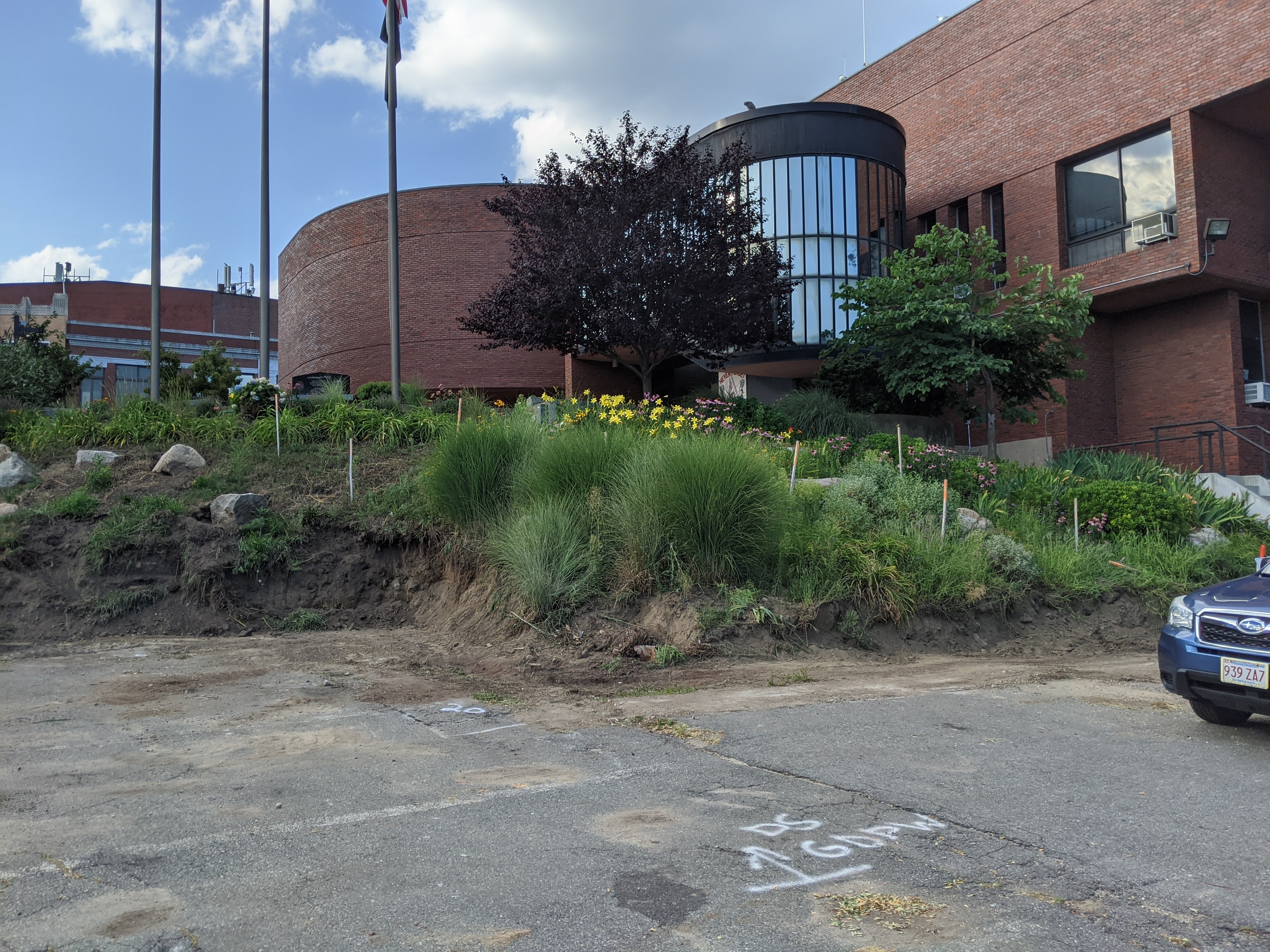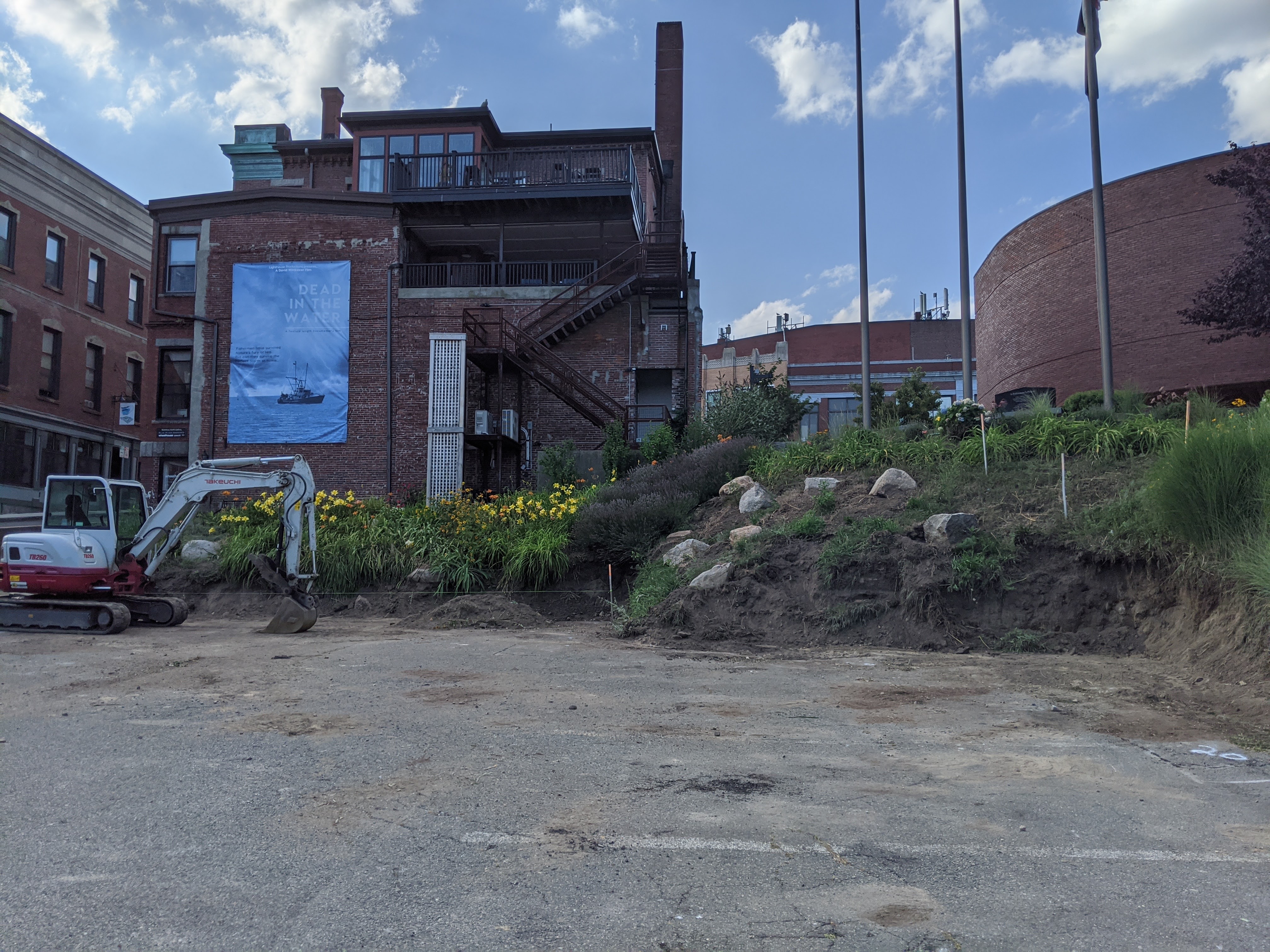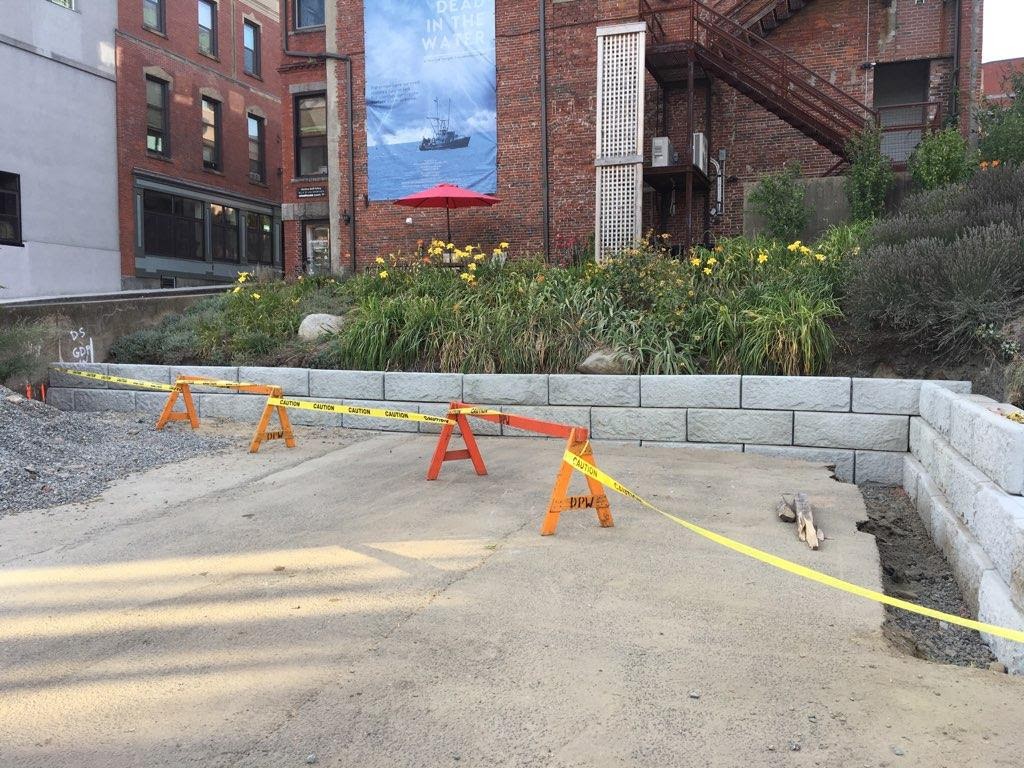 DPW has been building a retaining wall to prevent further erosion of the hill, as well as make the parking lot safer, especially in the winter.