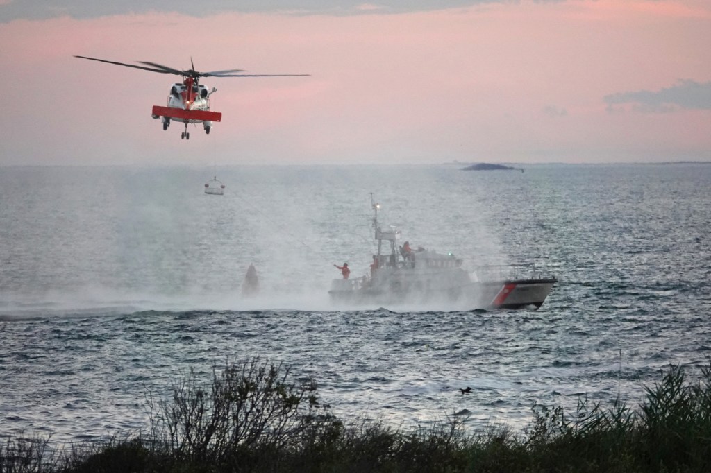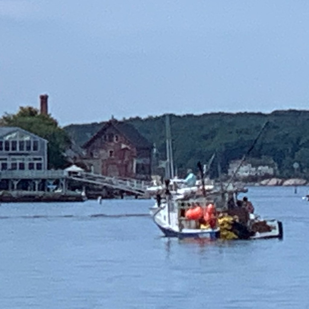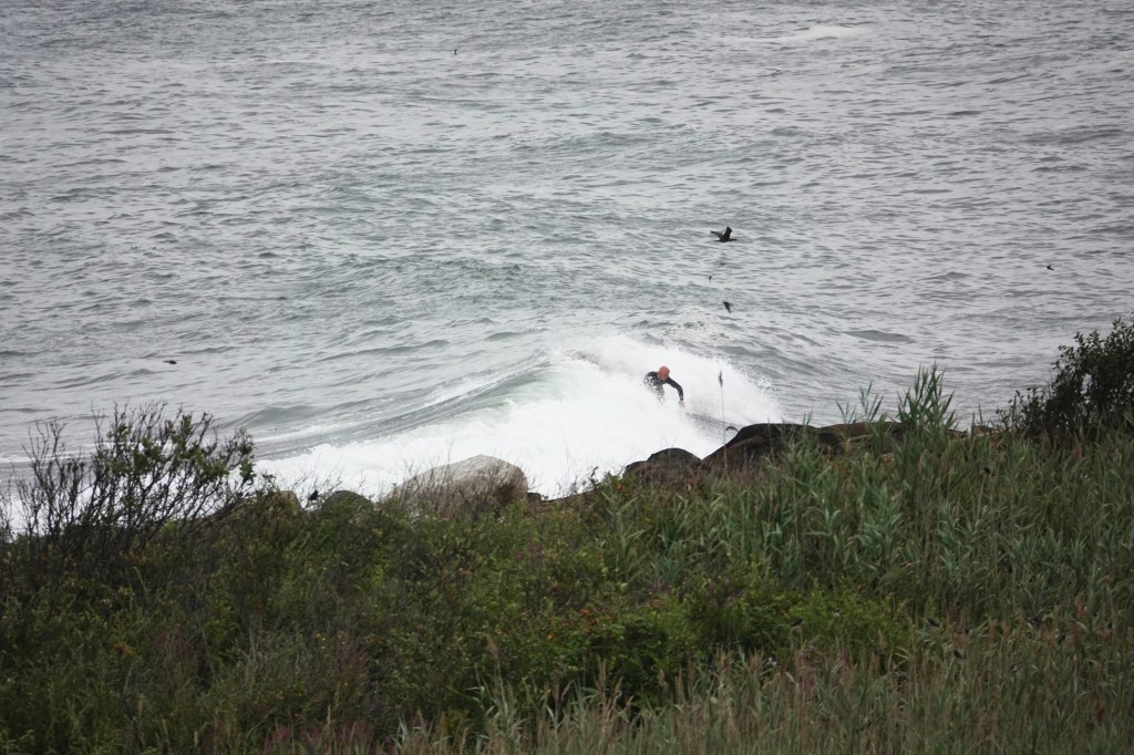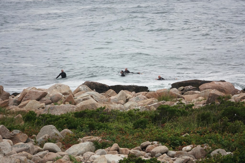 Sunday afternoon we watched surfers riding modest waves immediatly off the Eastern Point lighthouse, next to Mother Ann. Then on Tuesday evening we were treated to the US Coast Guard carrying out rescue exercises closer to the shore than usual.
