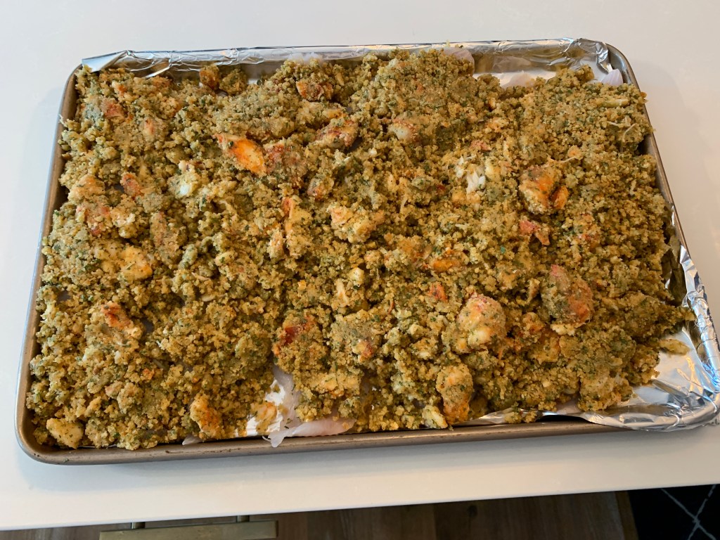 This will be the first recipe in my cook book. Virgilio’s bread crumbs, Fisherman’s Wharf haddock and Capt. Joe’s lobster, of course. James Beard award here I come.
