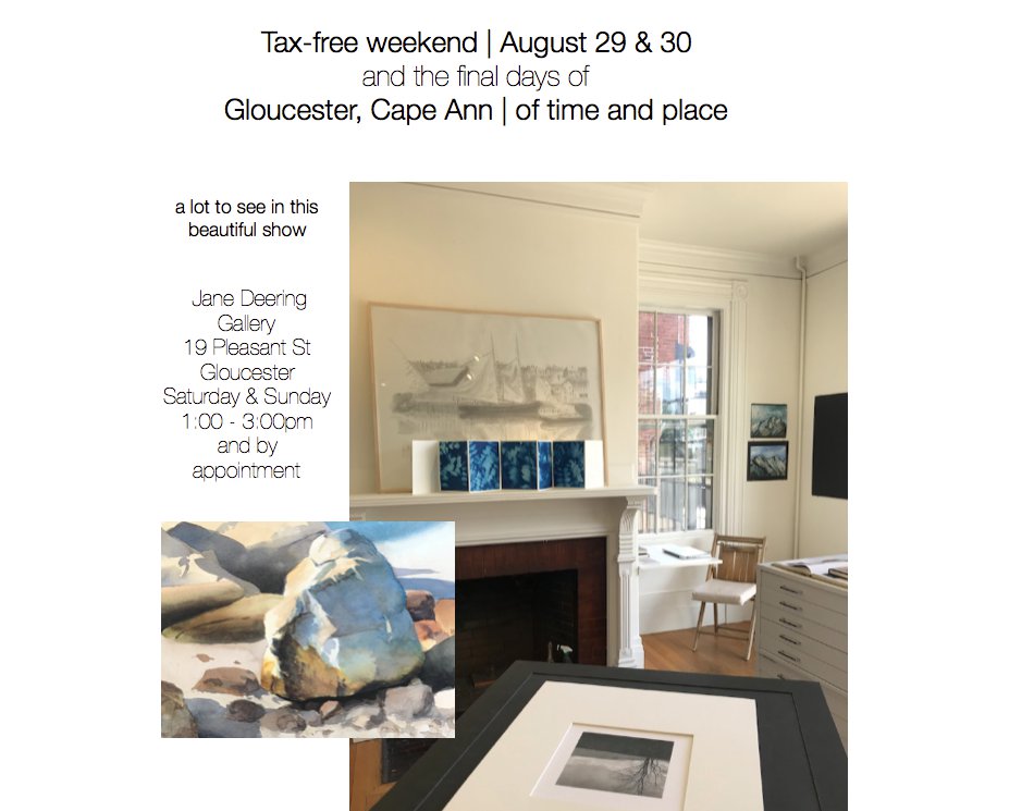 Tax-free weekend Jane Deering Gallery. ‘Gloucester, Cape Ann | of time and place’ art exhibit closes August 30th