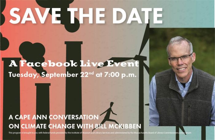 A Cape Ann Conversation on Climate Change with Bill McKibben on September 22