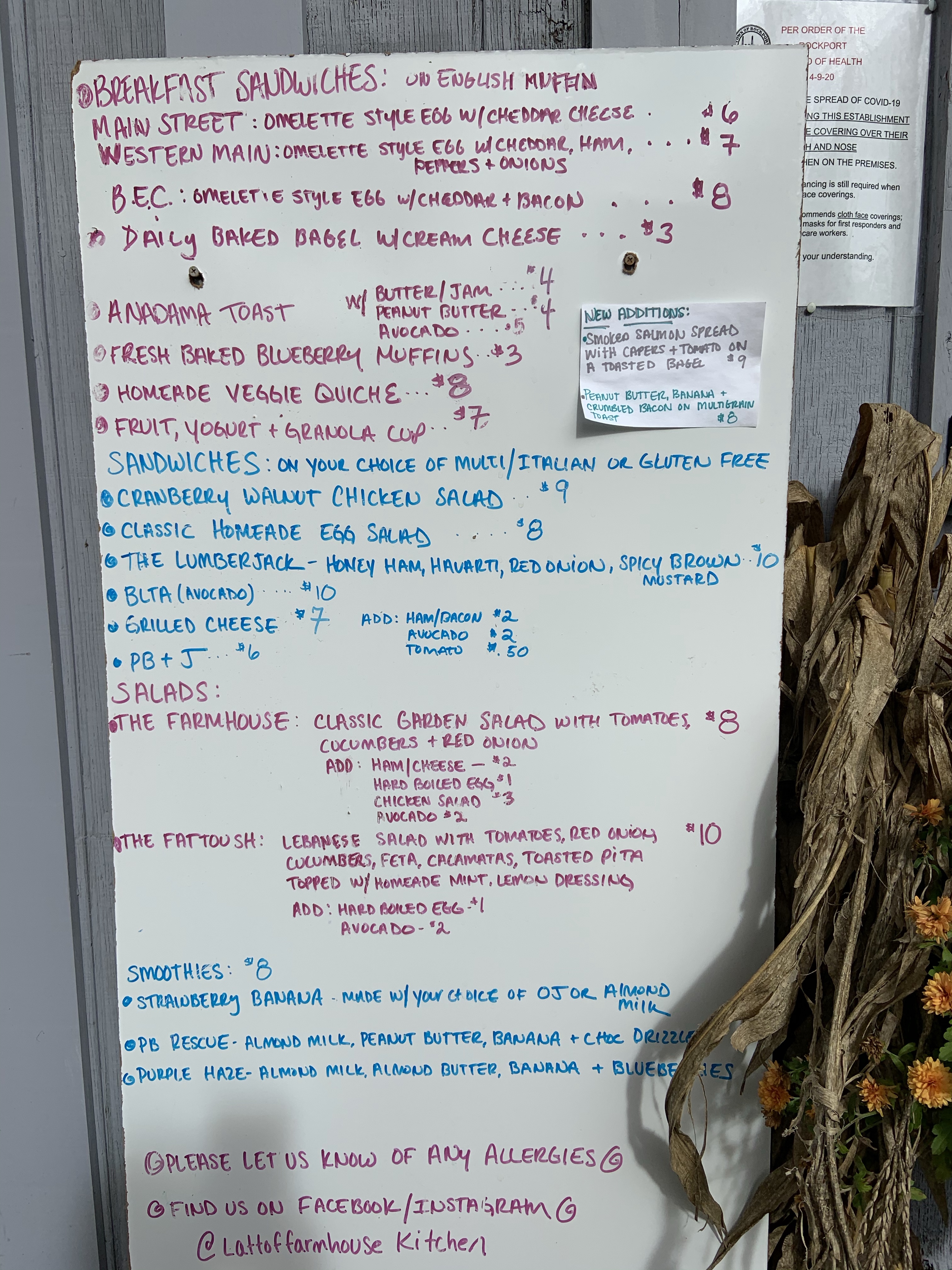 I have been wanting to stop by the Latoff Farmhouse Kitchen for a while now and we finally took the opportunity. The menu is wide ranging and service is offered through the takeout window. They do not accept debit or credit cards, but cash, check or Venmo are welcome. Jim’s cranberry walnut chicken salad sandwich on a bagel was quickly finished! See that, Joey? More information regarding hours and menu is available here. It is located on 127 in Rockport near the transfer station. Well worth the short ride.