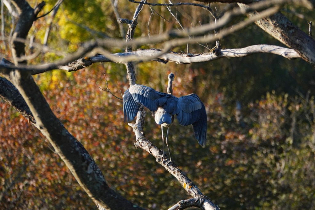 Don’t mean to inundate you with Great Blue Heron photos, but our friend did return and put on a good follow-up act.