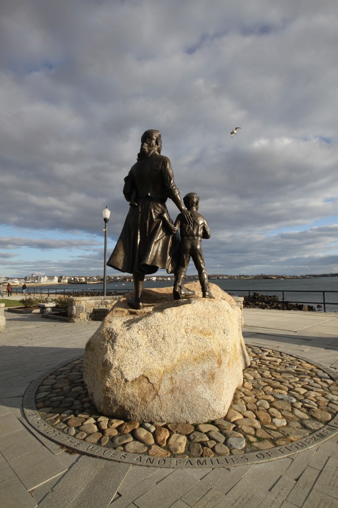 The afternoon sky recently was so dramatically beautiful that I took shots from several different angles. One was at the Fishermen’s Wives Memorial, my personal magnet. Contributor Nichole posted yesterday about her affinity for the Man at the Wheel. Mine is for the Wives Memorial. She overlooked some jaw dropping skies this week.
