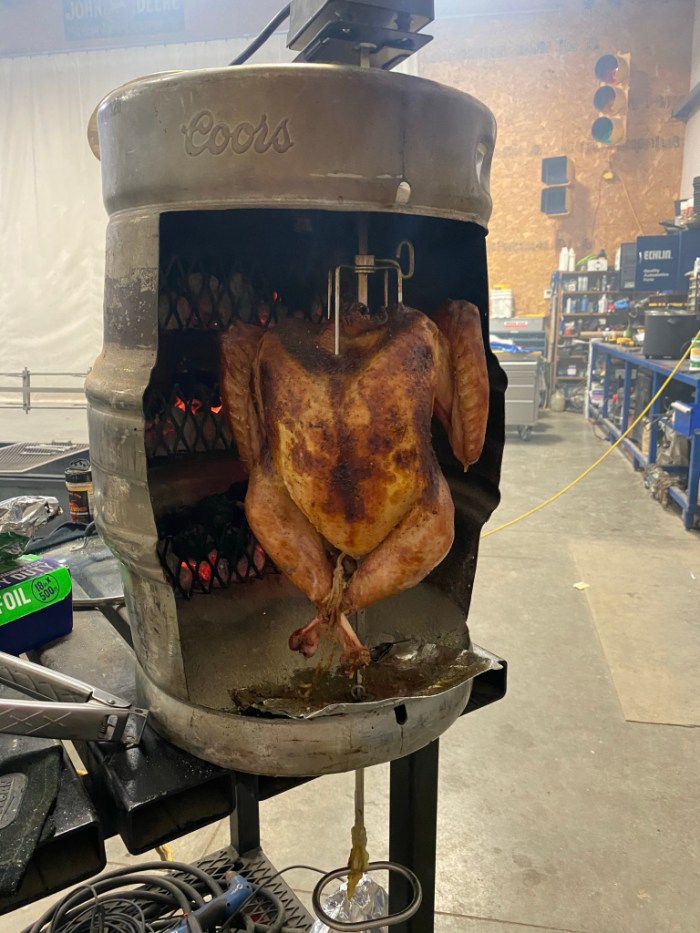 Greg and Will Bruggeman from Selden Kansas Create Roti Out of A Keg to Spin Thanksgiving Bird