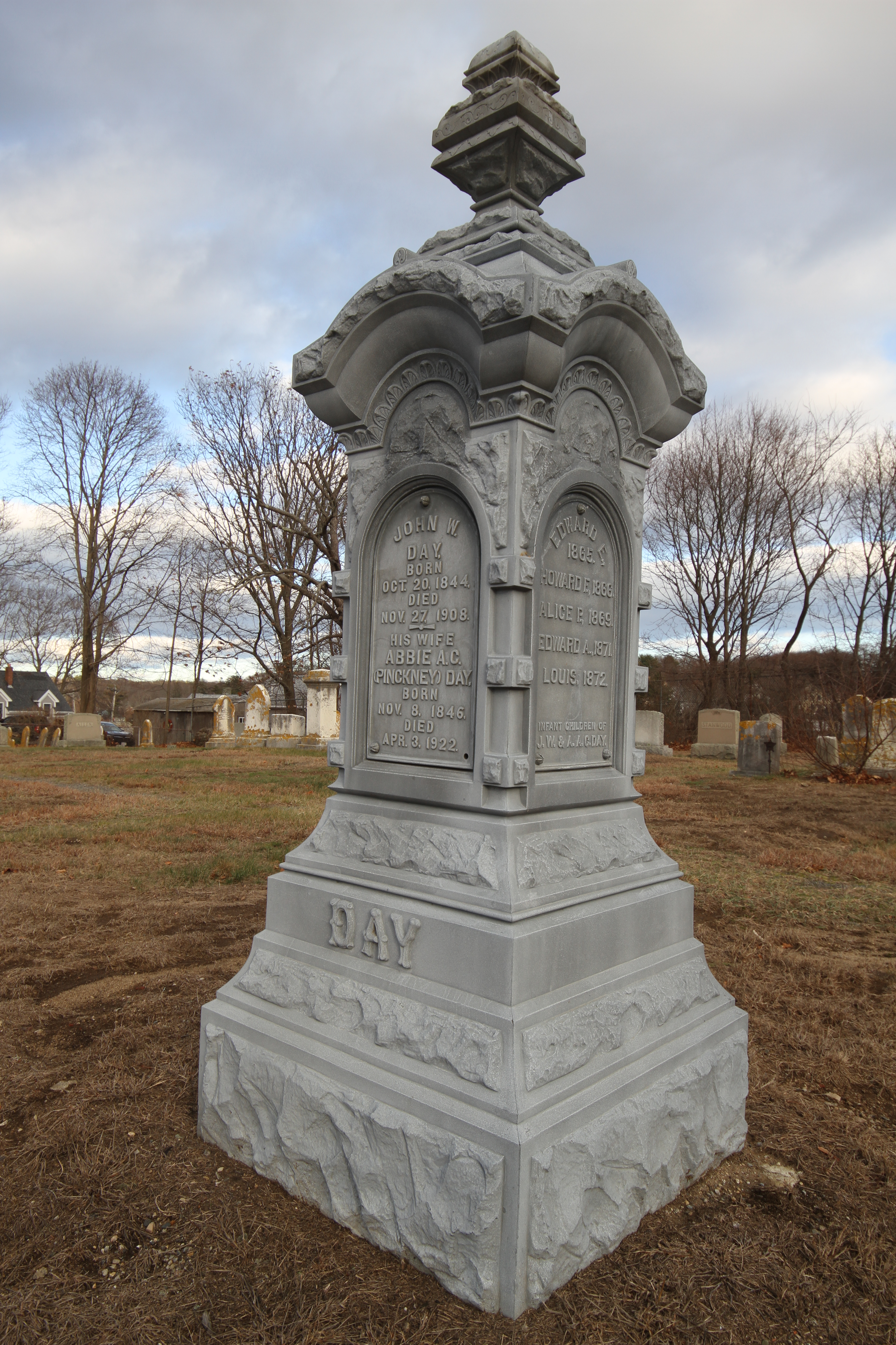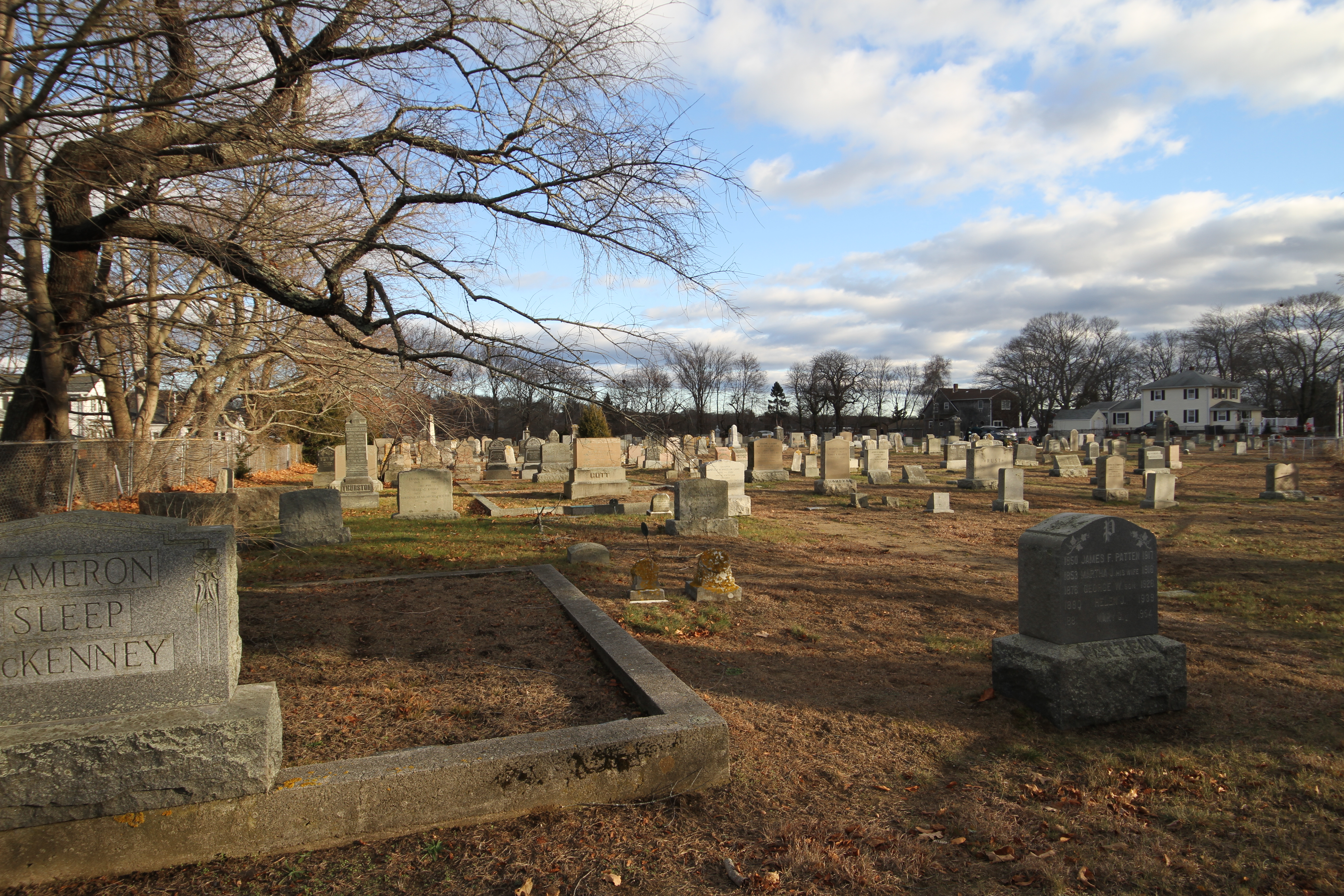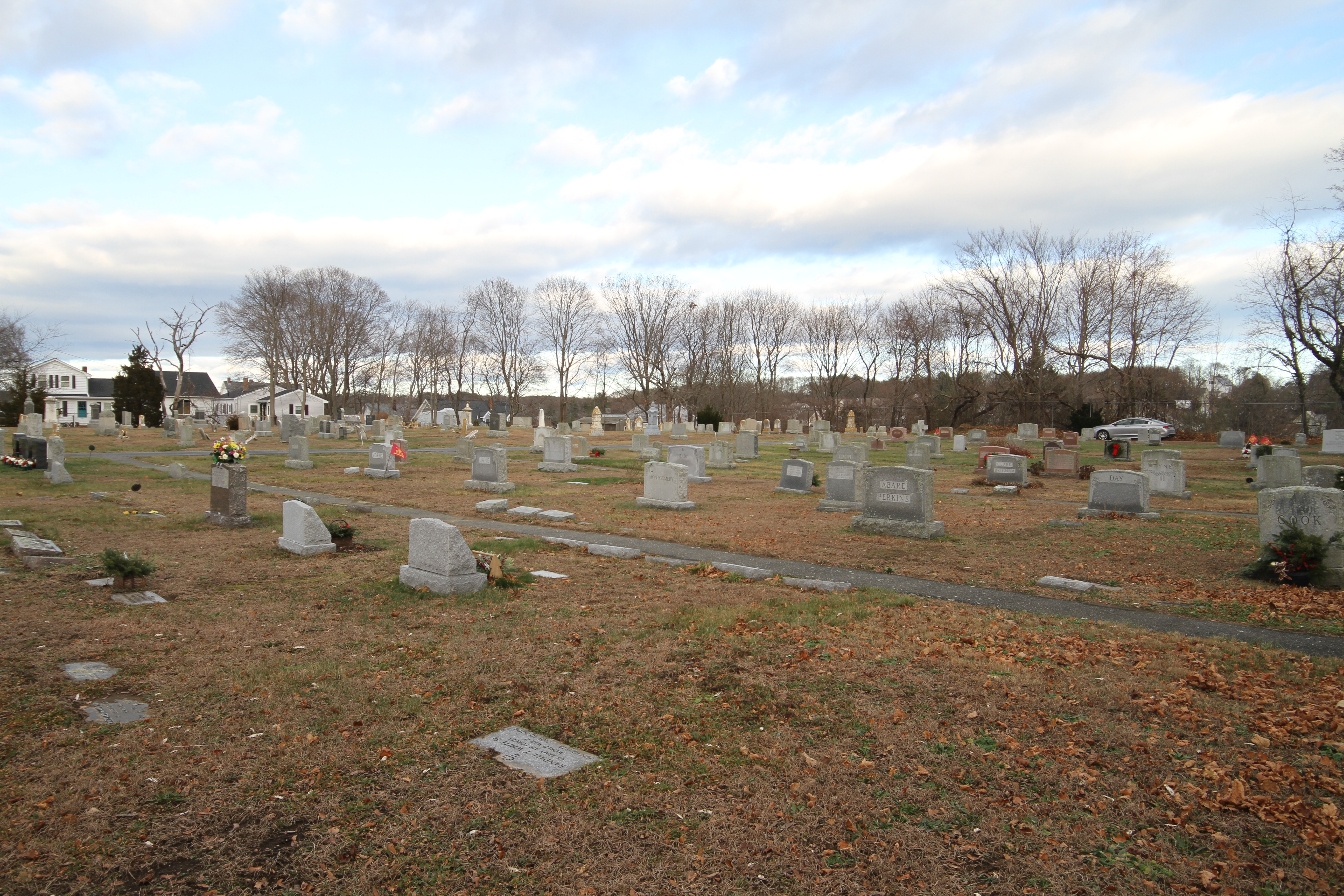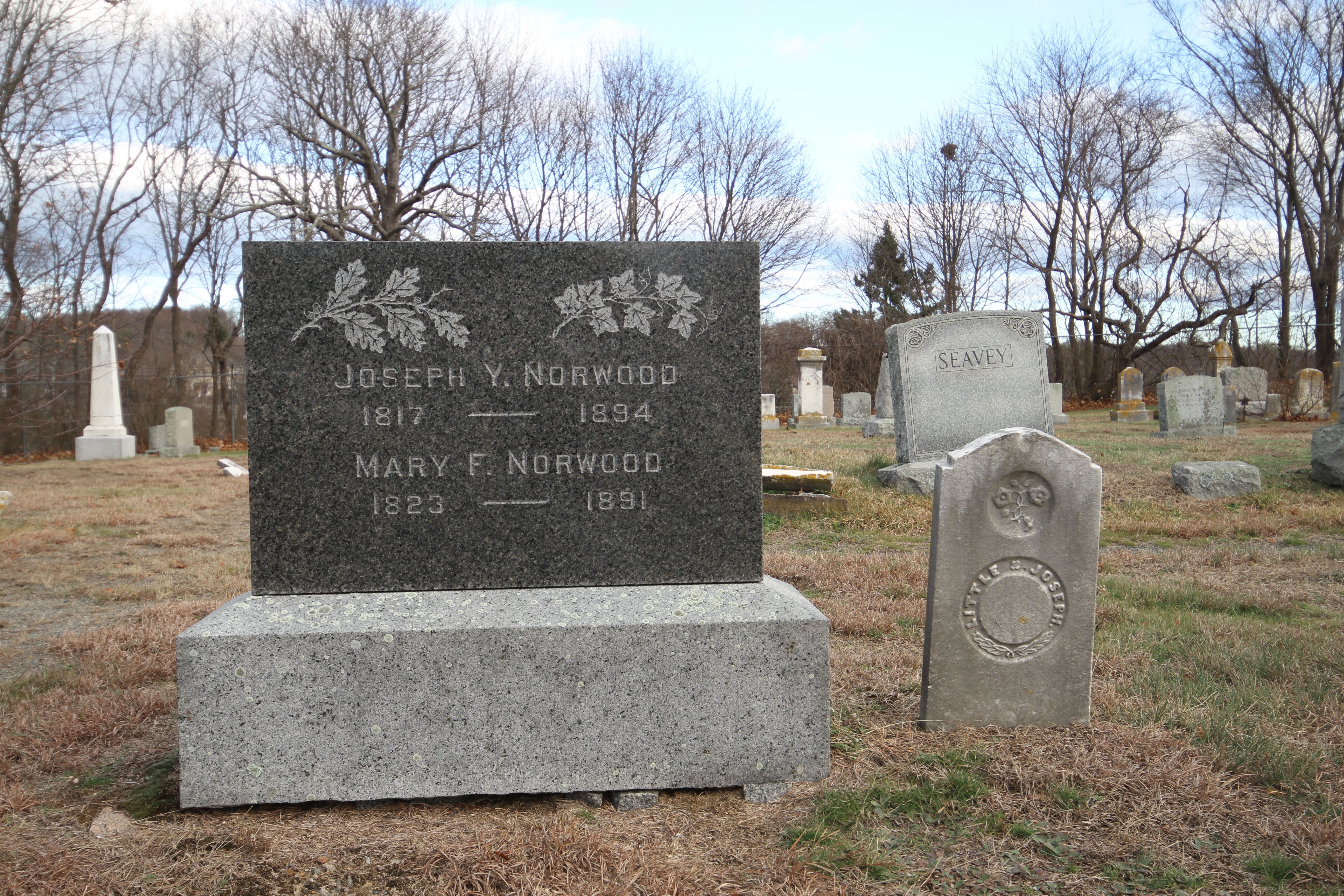 According to my copy of A Guide to Cemeteries in Essex County, Massachusetts from the Essex Society of Genealogists (1991), the Wesleyan Cemetery is private and has been run from about 1805 (it’s noted with a ? so I assume that’s an educated guess) but it does not feel like an “old” cemetery. It is small and well kept. Pathways are clear and there’s an interesting mixture of old and more modern gravestones. As you will see in the pictures, older grave sites have modern markers which indicates to me that someone in the modern era wanted those people to be remembered.