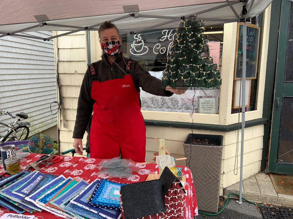 Bex aka Cape Ann Handy Woman has her LOBSTERTRAP TREES, wreaths, and MOTIF #1! Plus Dot’s amazing quilted goods!!