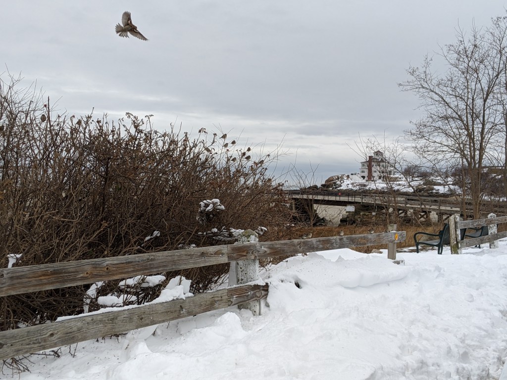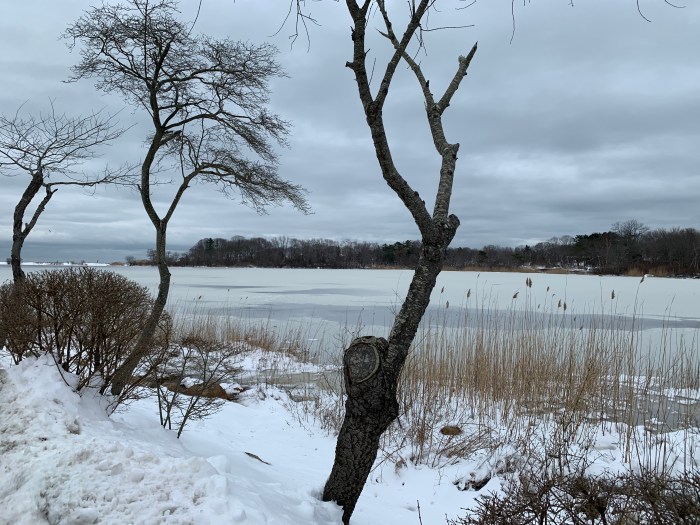 Here are some weekend photos around Eastern Point following the snowstorm. Regarding the first, the closest conjunction (visual) of Saturn and Jupiter since the Middle Ages is right now. I knew it would be overcast, so got this picture last Friday.