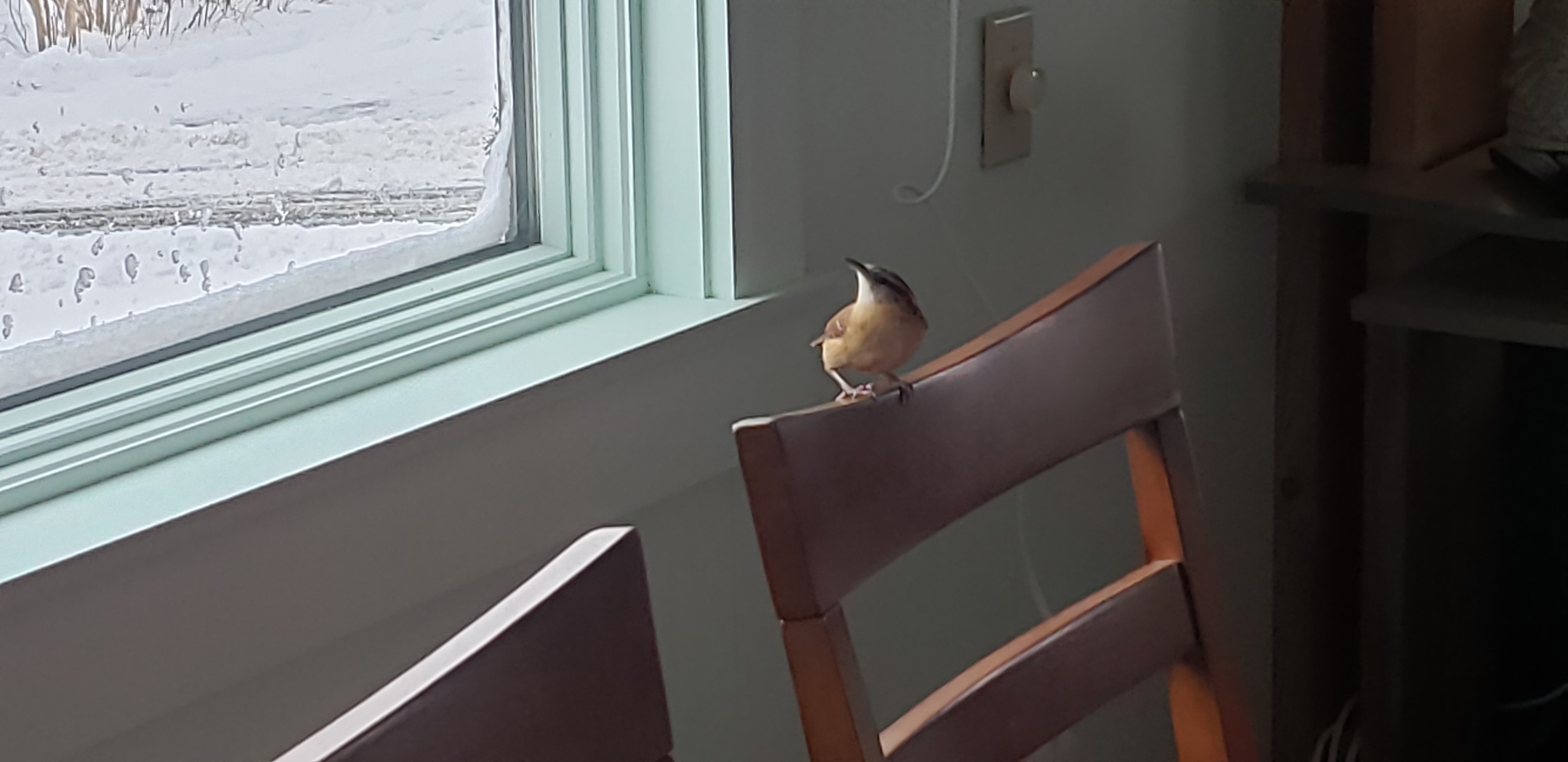Poor little bird was so scared. Opened the sliding door and gently guided this little bird back outside.