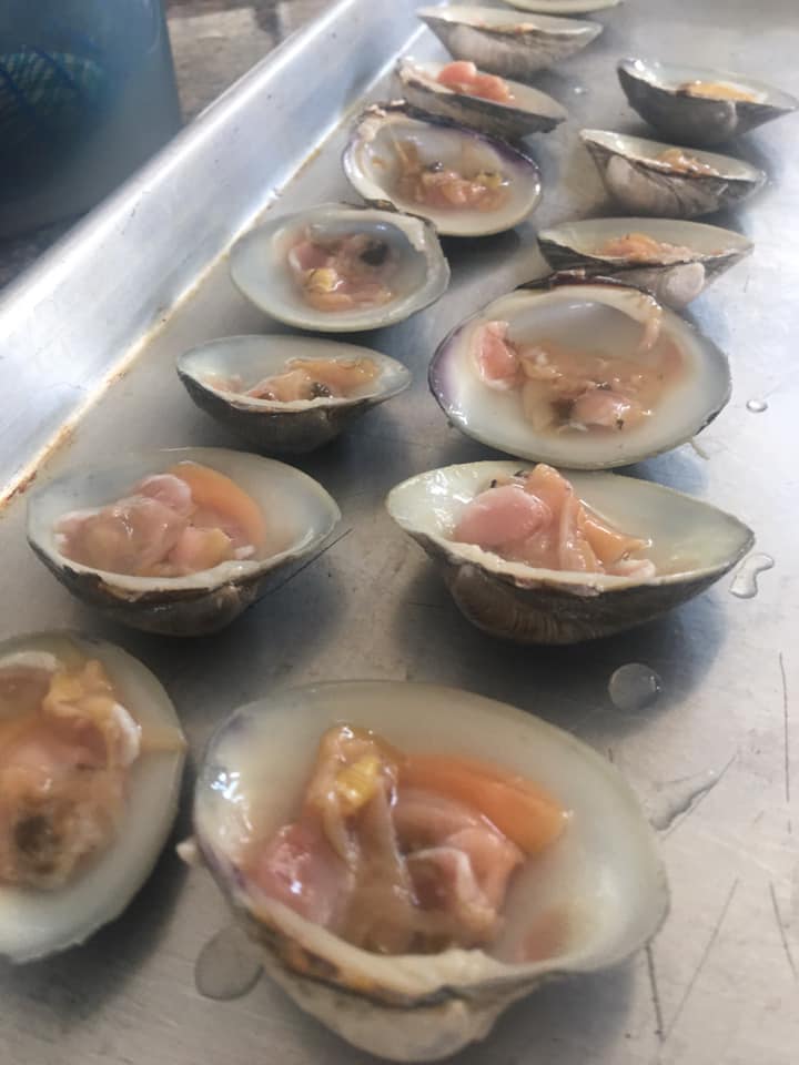 Every Christmas Eve The Men Open The Clams. It is my favorite Christmas food that our family has been making for decades. Uncle Charlie and Auntie Angela were the ones that started it I think and Felicia and my mom do their excellent version of it both outrageously good and if I could only eat one thing on the holidays this is what it would be. I’m not sure if Felicia got topnecks or littlenecks this year.