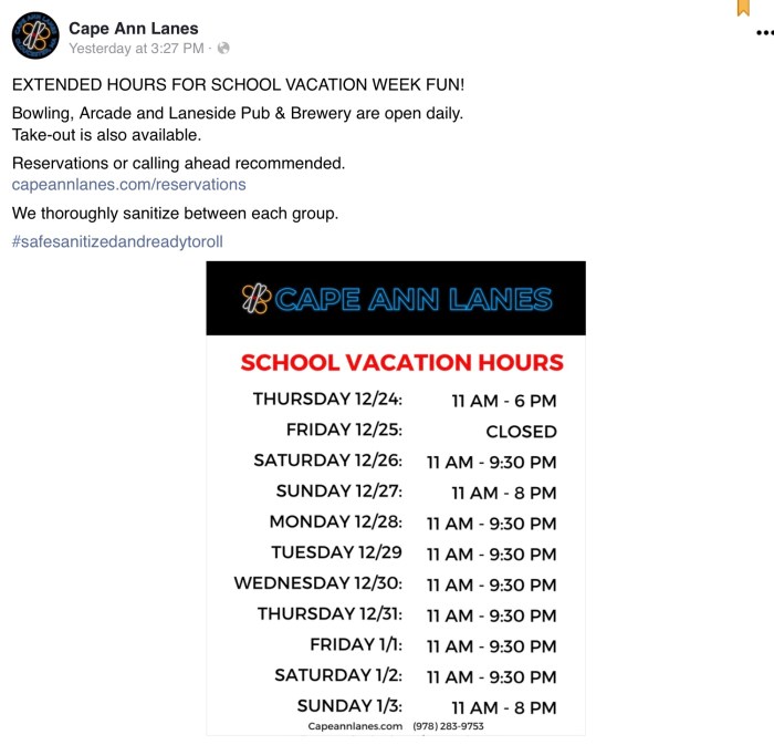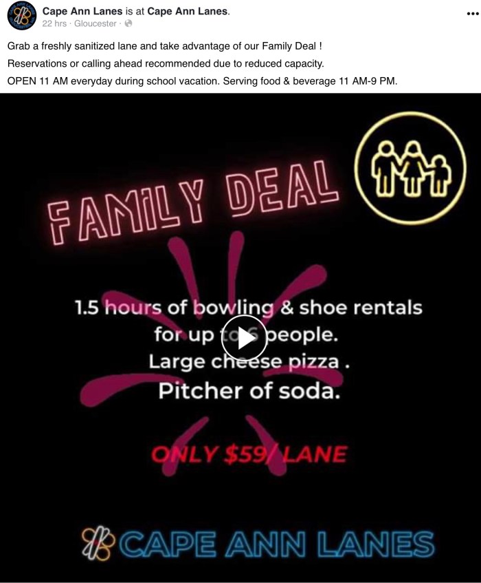 Cape Ann Lanes is ready for you and your family during this vacation week and are offering some special deals. Check them out at Cape Ann Lanes online. It is recommended you call ahead and make reservations to avoid disappointment. This would be a good time to give them a try if you haven’t been there in a while.