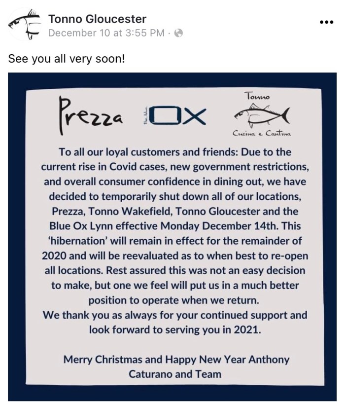 Last Dinner Before Tonno Temporary Closure