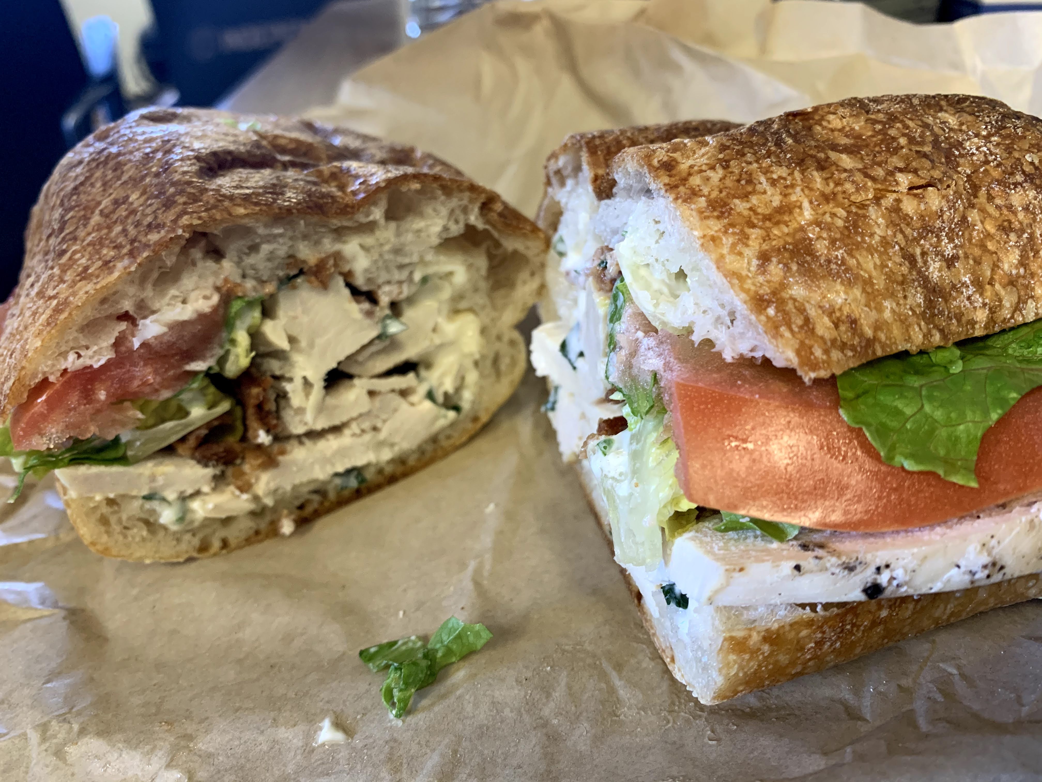 THE ITALIAN Capicola, salami, pepperoni, provolone, lettuce, tomato, oil, vinegar on ciabatta rollCHICKEN CLUB chicken, bacon, lettuce, tomato, herb mayo on ciabatta rollHAM & BRIE ham, brie, romaine, and honey mustard on ciabatta roll