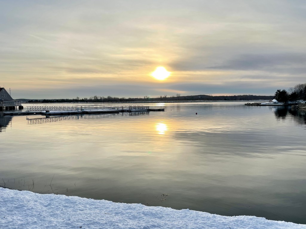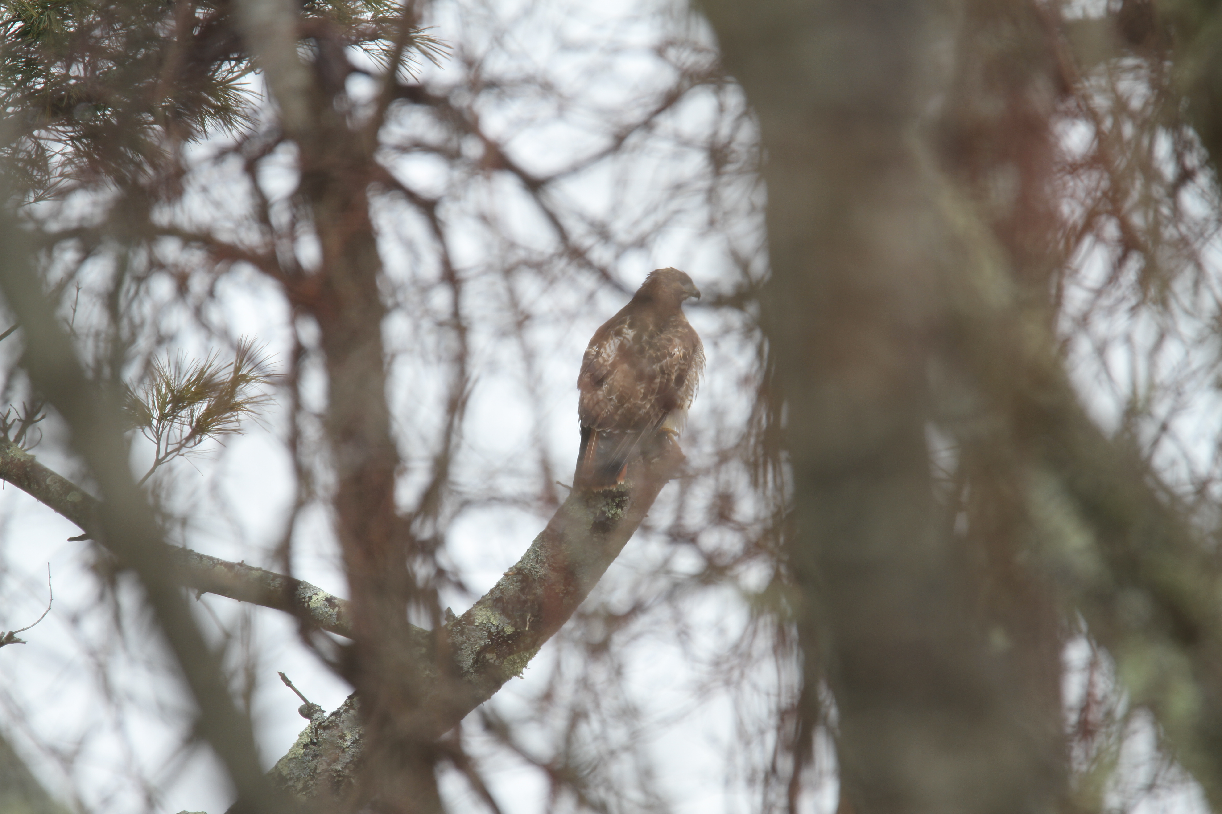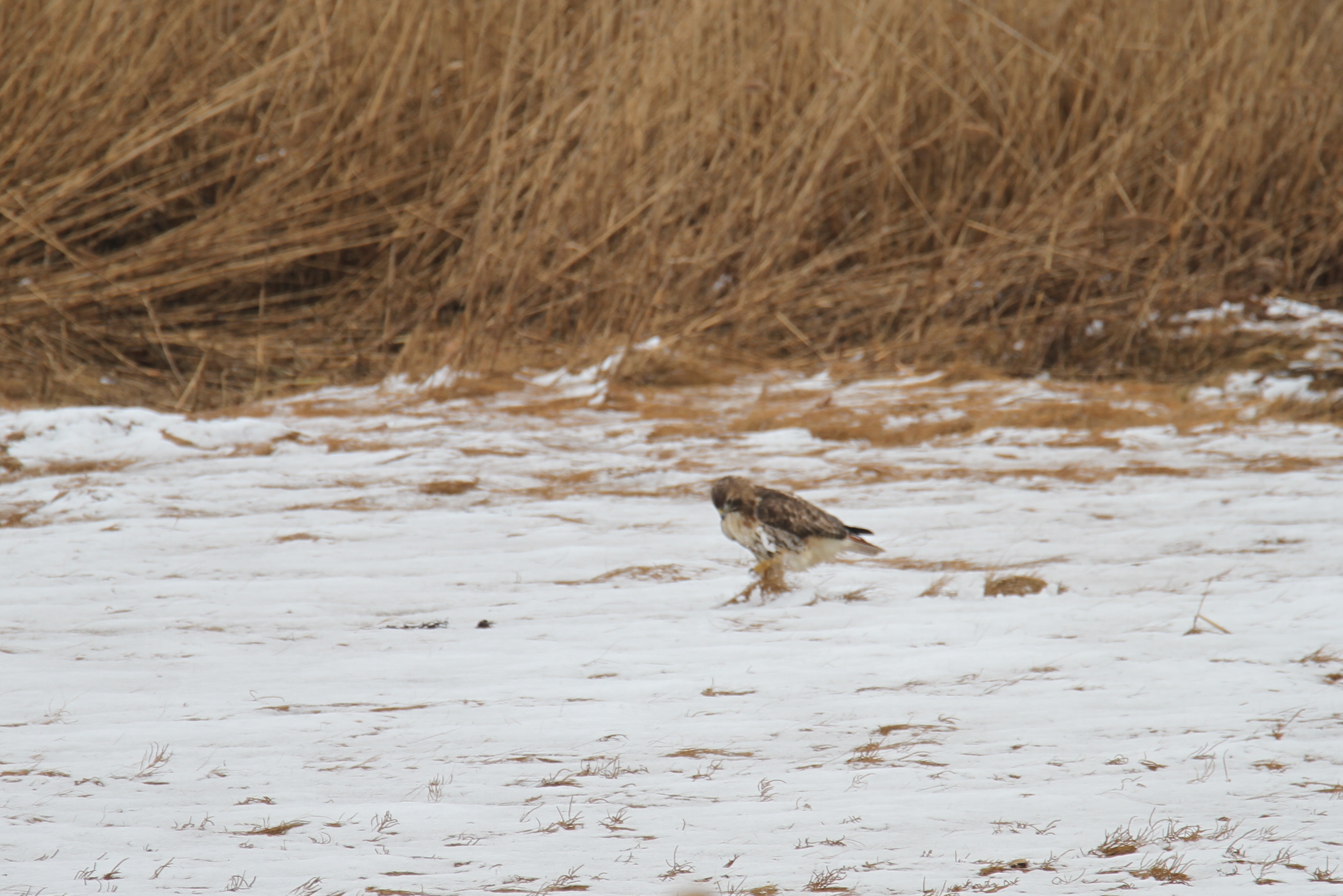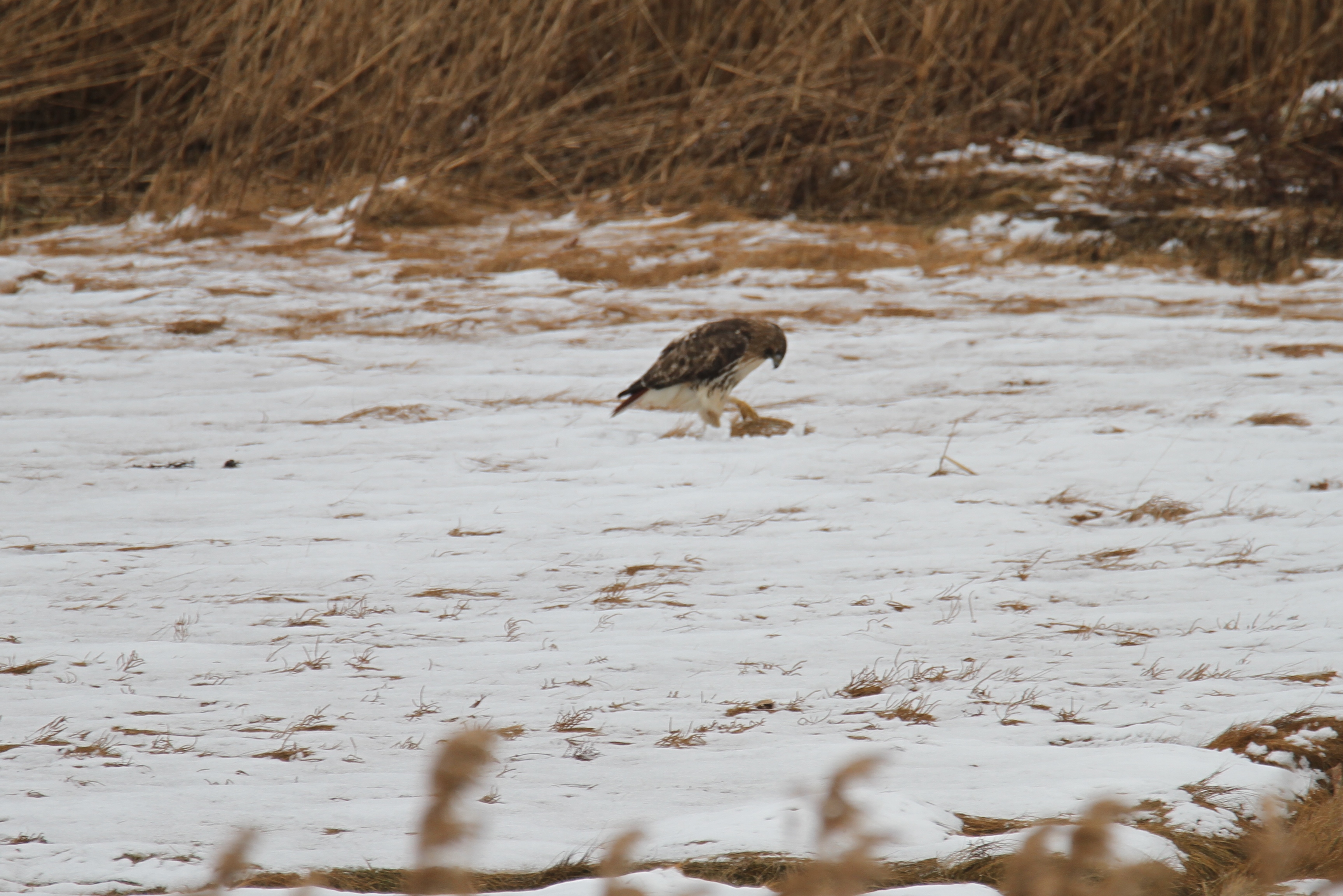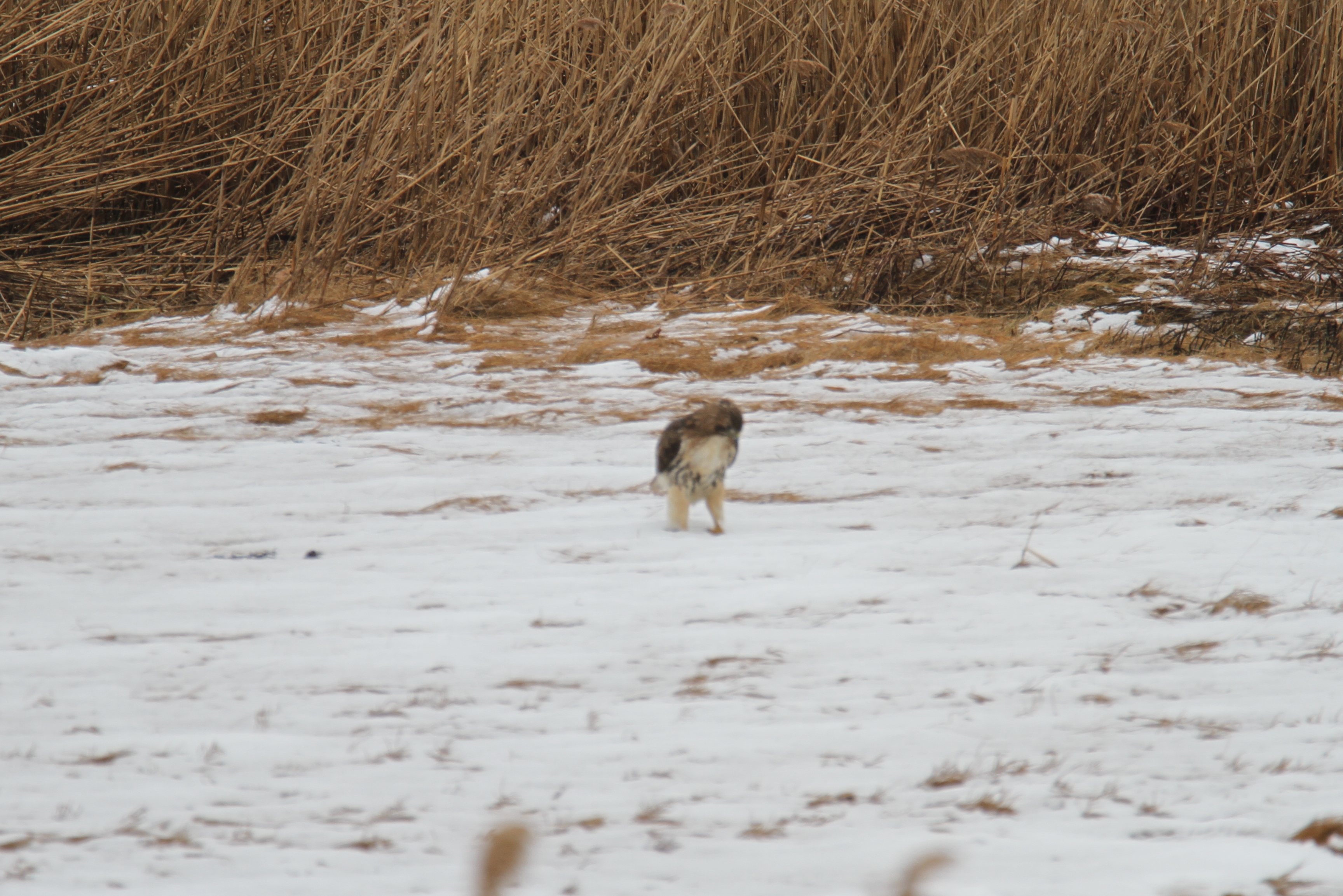 We watched an interesting story from our back deck recently as a hawk flew with great determination to a spot in the marsh. It was low tide, so the area was frozen over and some snow covered the area. After it landed, it looked around the ground for a bit and then began to claw and stamp at the frozen grasses, presumably seeking lunch. It stomped around, digging up the grass but coming up empty of prey. It was intriguing to watch deliberate moves I’ve never seen from a hawk before. He then flew off to rest in a branch to think about Plan B. We’ve been seeing hawks a little more often recently and are wondering if they will be returning to their nest in a nearby tree this year.