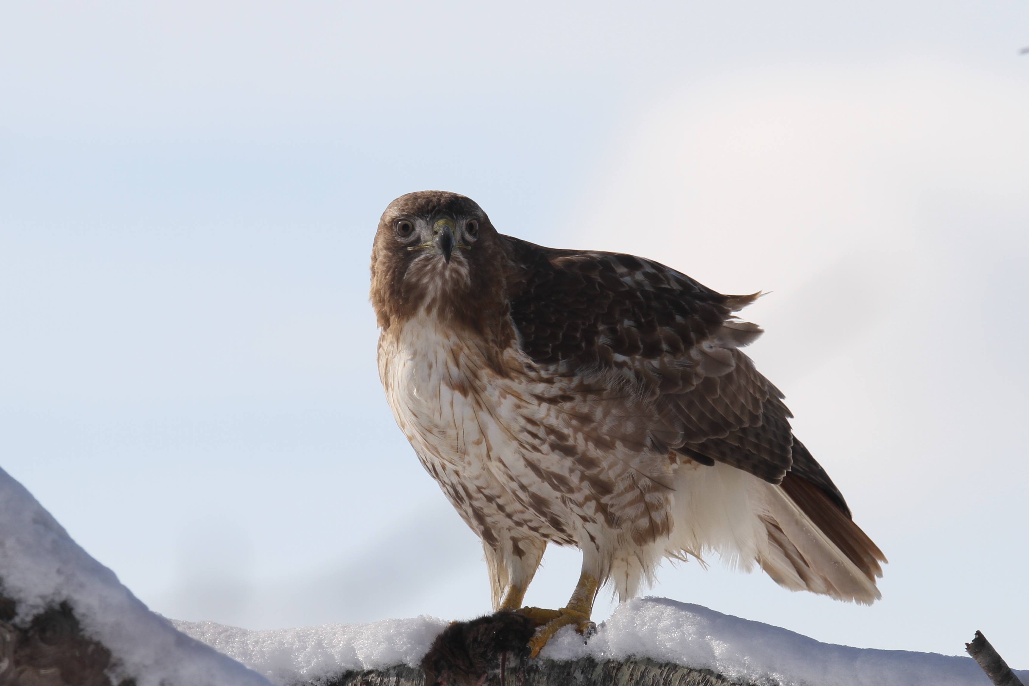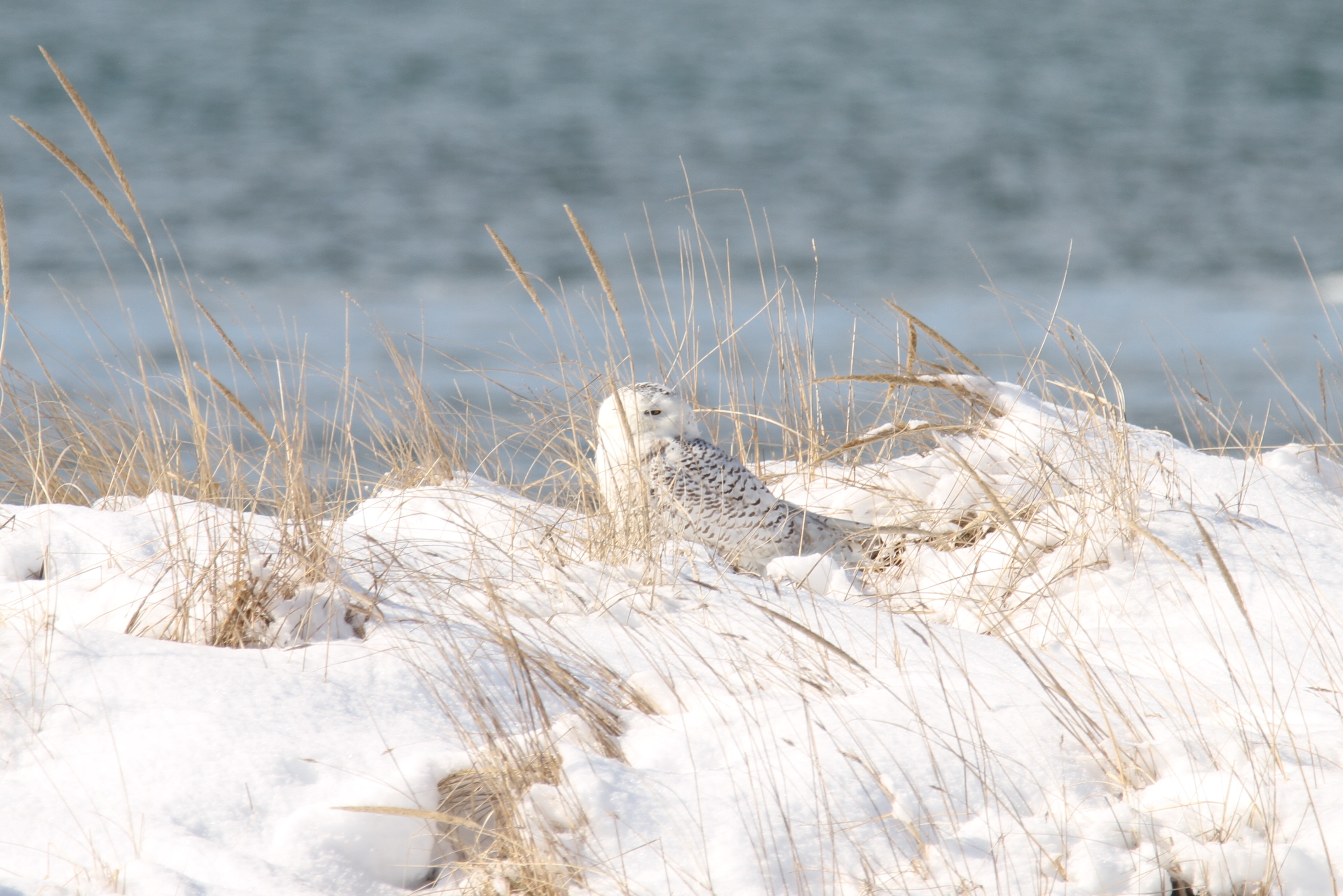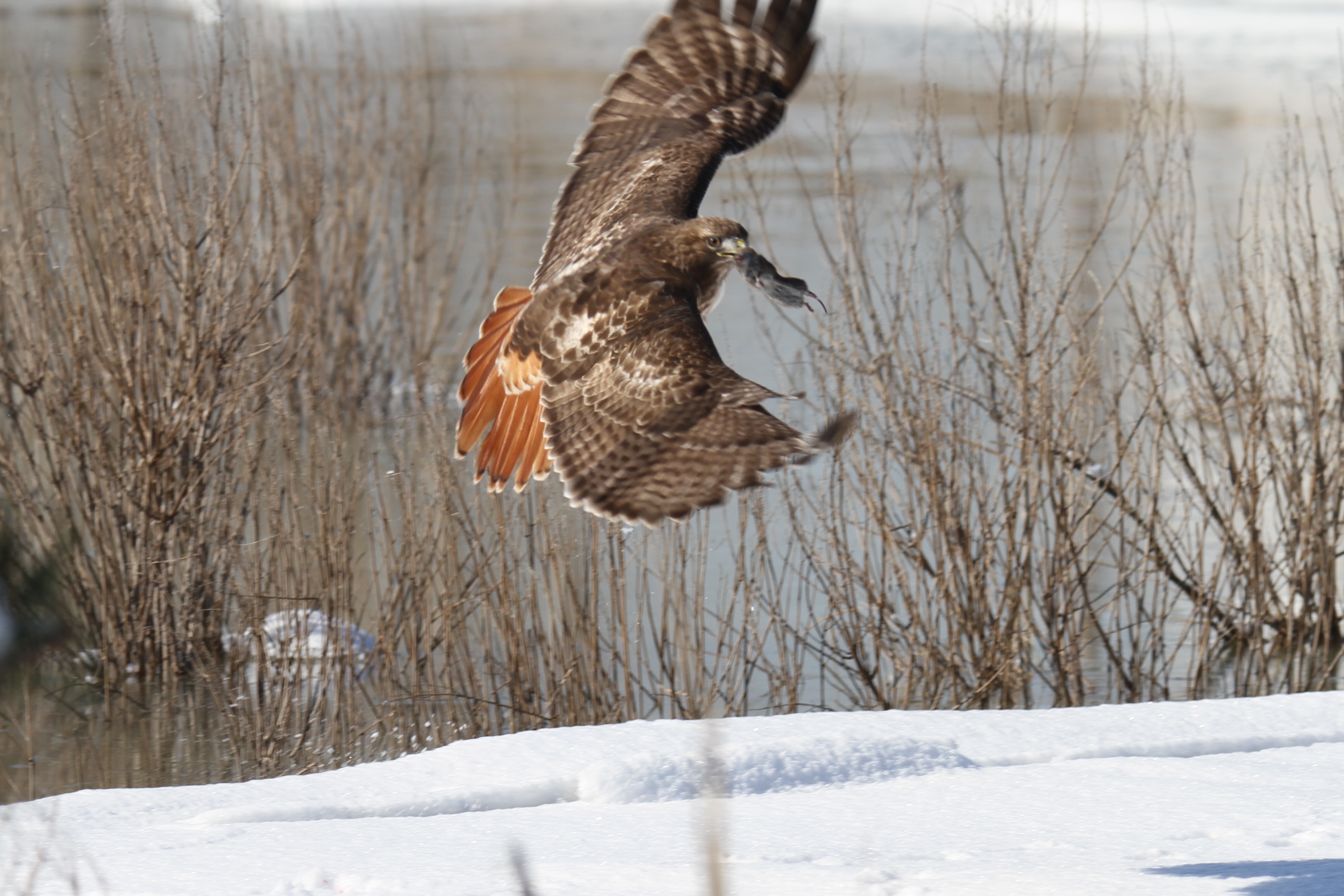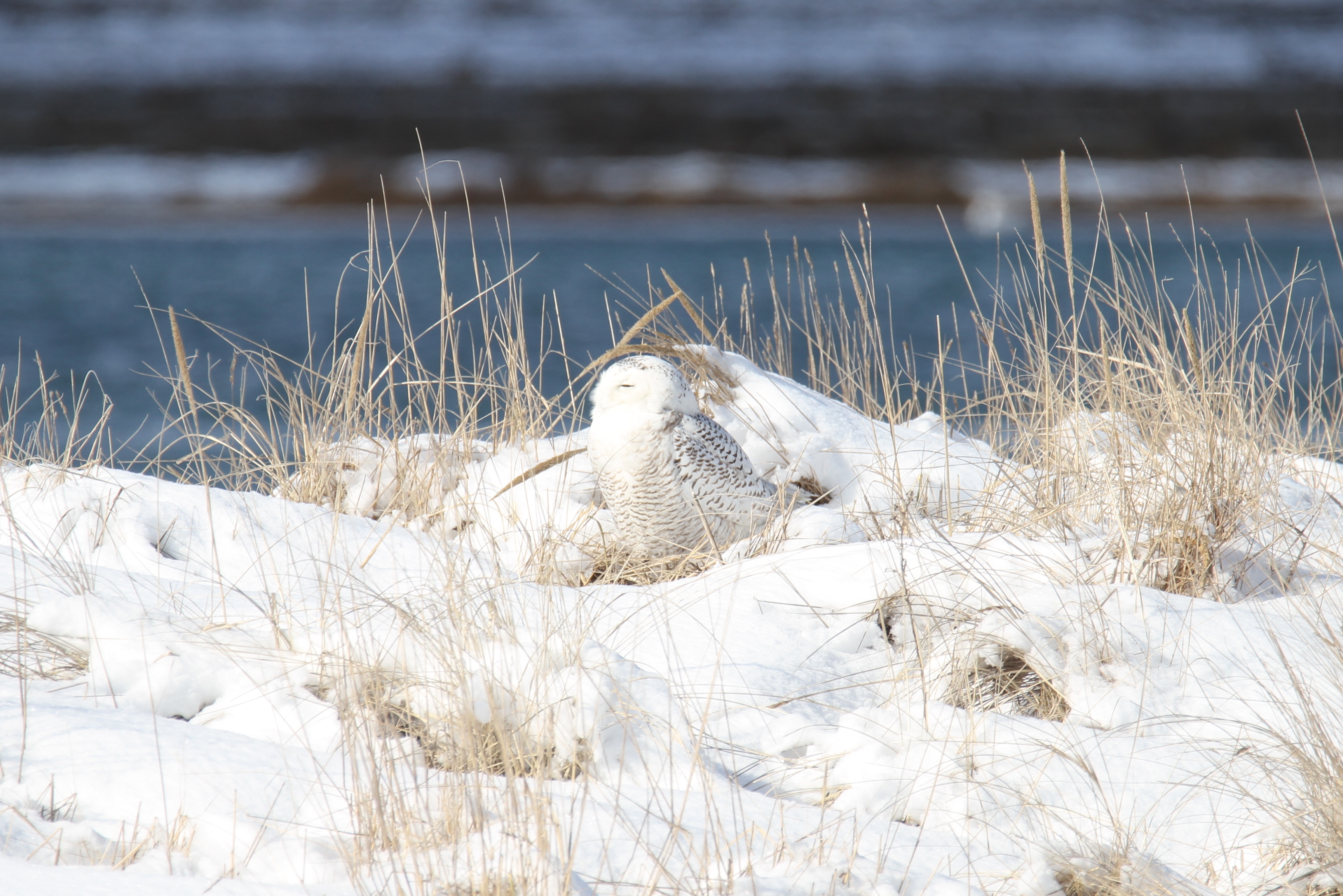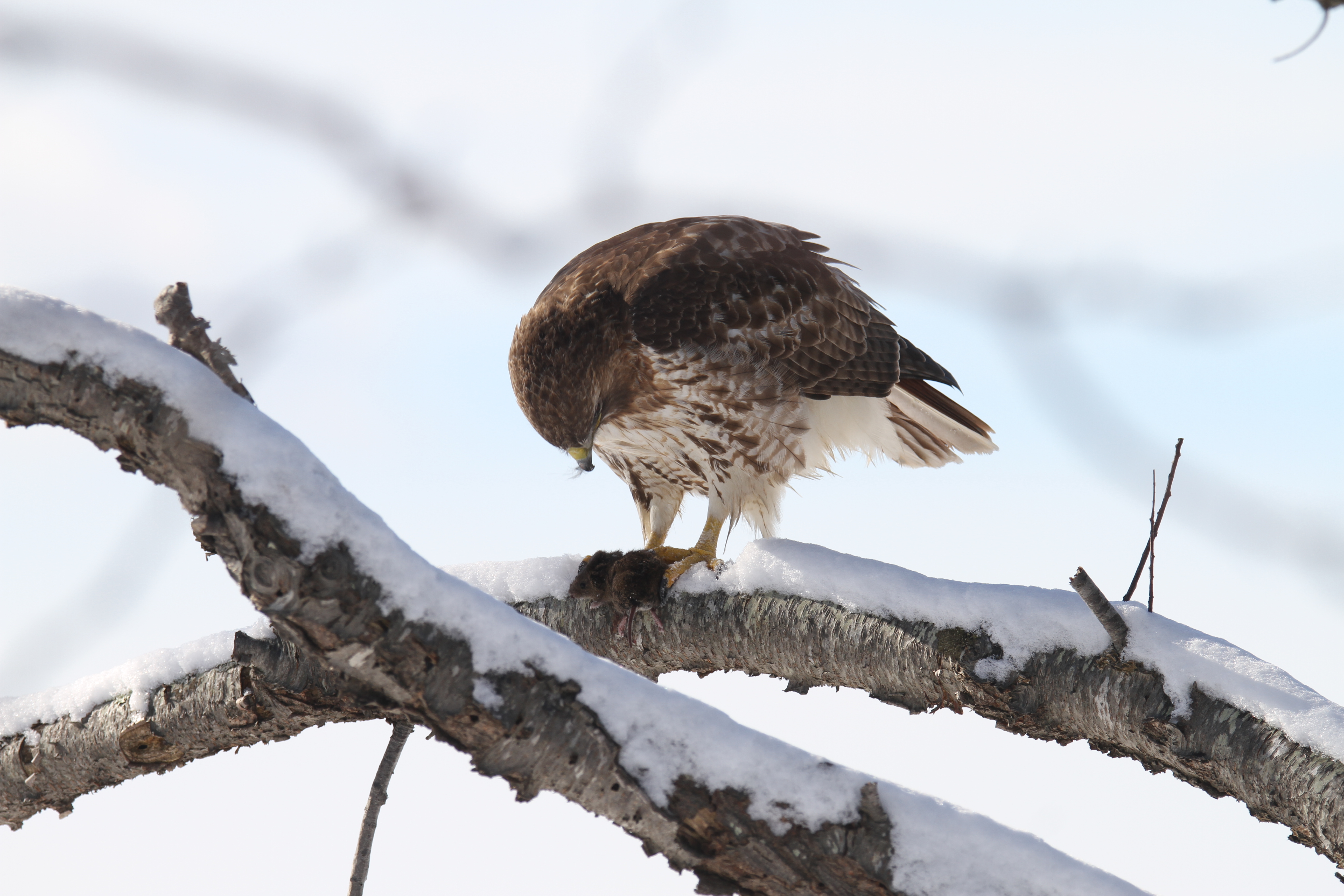 We had great luck finding some of our favorites at Salisbury Beach State Reservation yesterday morning. This red tailed hawk brought its prey to a nearby branch allowing us to observe up close. The snowy owl was further away, but sitting prettily in the sandy snow. Oddly (in my mind) there were more people watching ducks than the snowy; which, of course, allows the snowy some extra peace. I highly recommend a ride to Salisbury Beach on a nice winter day. There is no admission charge, plenty of walking space and parking along with lots of wildlife to observe.