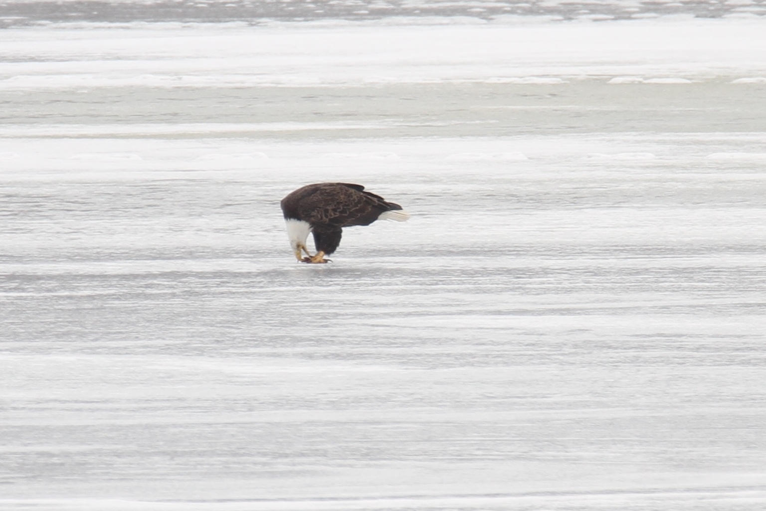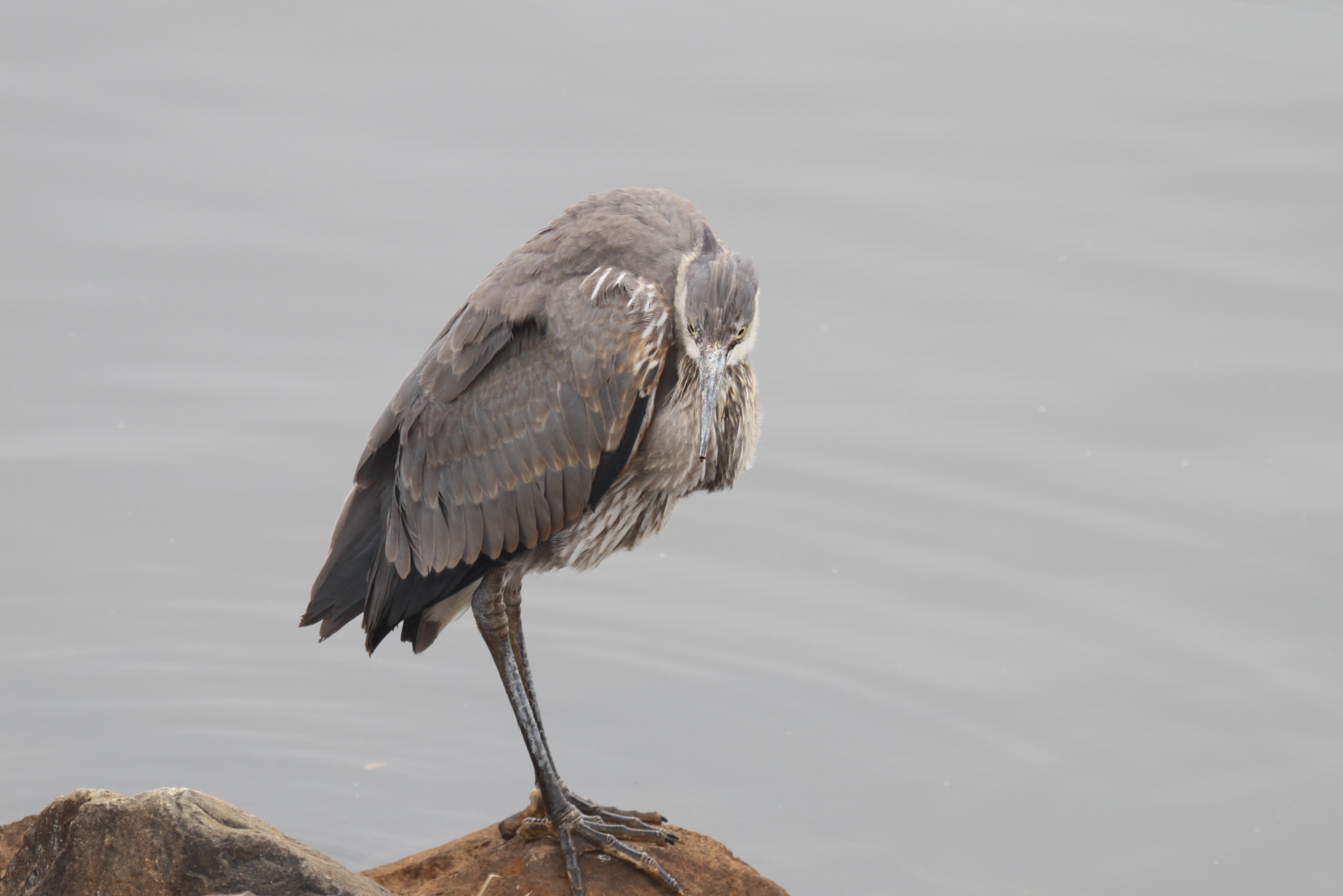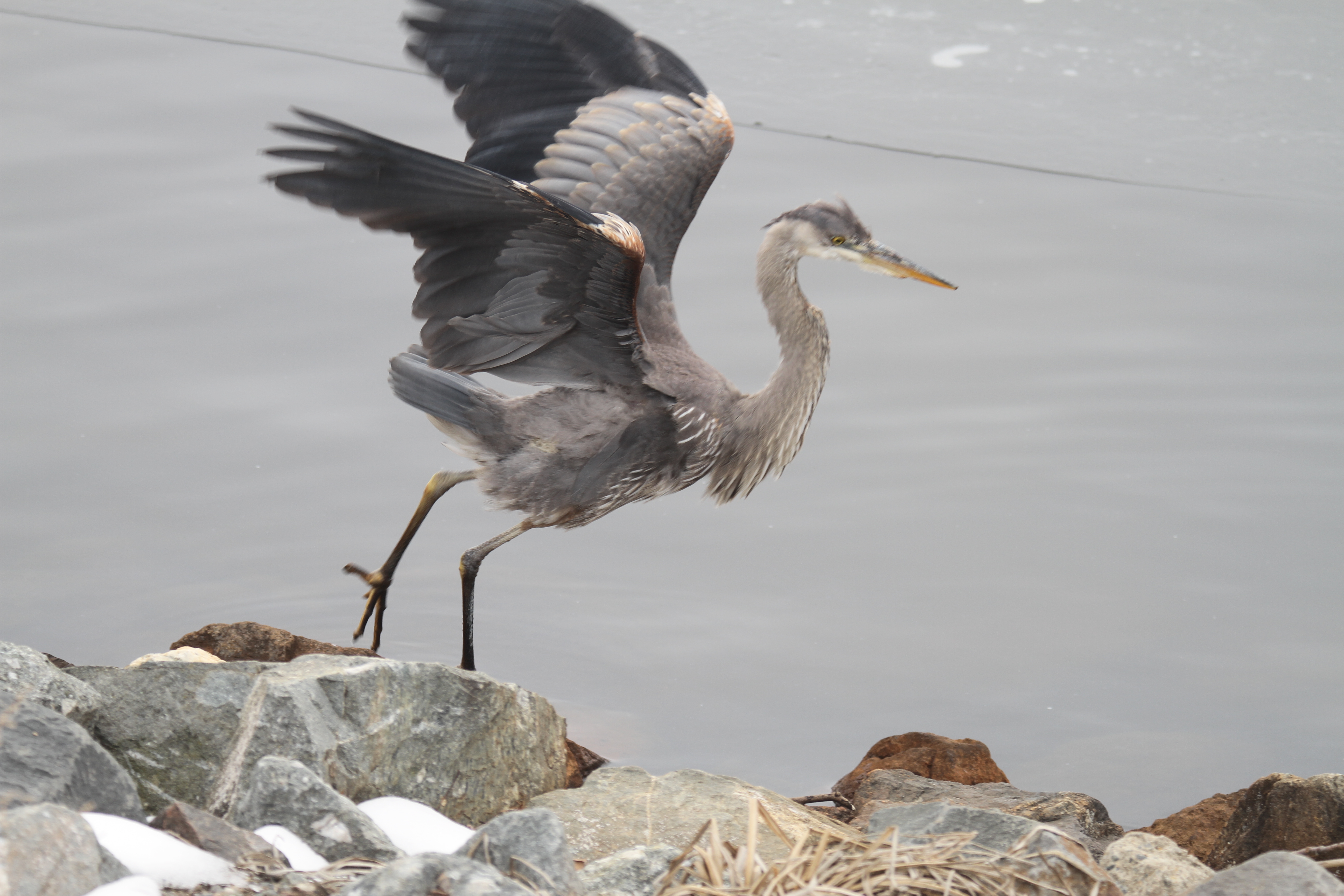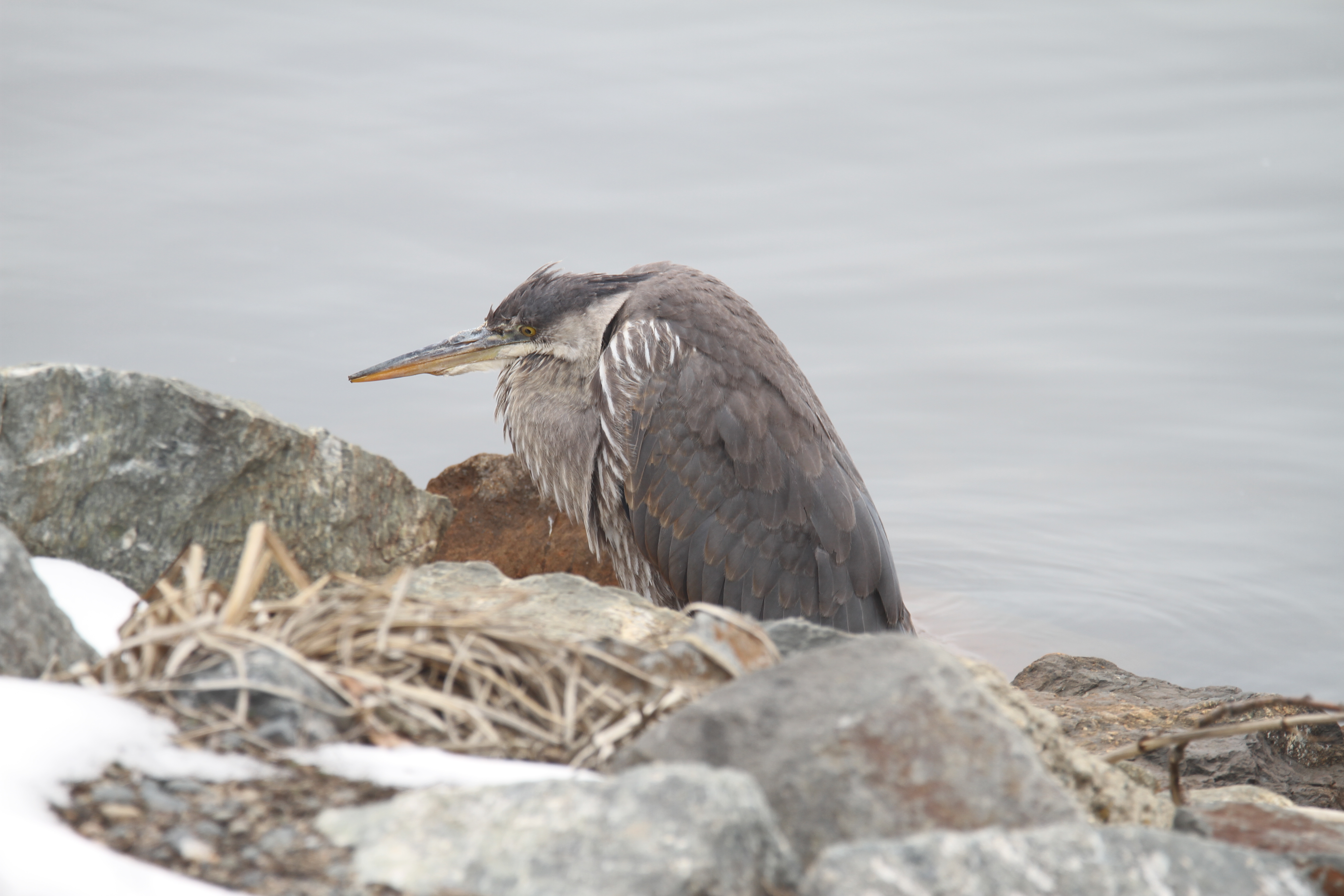 An almost invisible additional star was a blue heron hanging out on the shore, very well camouflaged and nearly overlooked. He was a little slow moving, perhaps because of the cold. I was pretty surprised to seem him come so close.