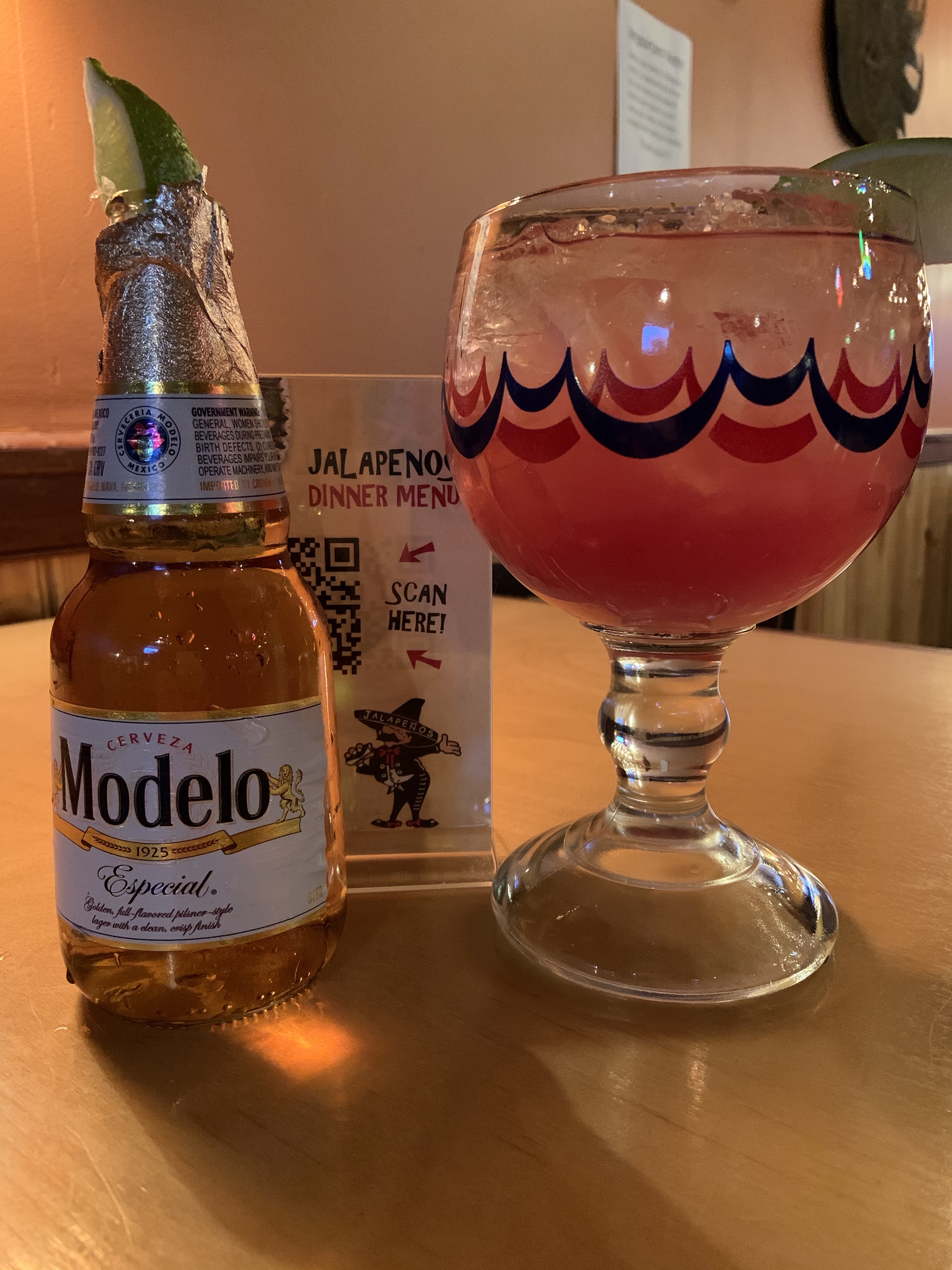 We had not stopped at Jalapenos on Main Street in quite a while and when I saw the advertisement that Margarita Day is today Feb 22, I knew (for the sake of our loyal readers) that I needed to “preview” their margaritas!!! My usual go-to at Jalapenos is the frozen raspberry margarita, but it was just too cold for me to order that so I went with cranberry. Served in a GIANT glass. Jim had chicken flautas and I had a steak fajita. The food was delicious and efficiently served by masked waitstaff. Tables are separated appropriately and all precautions we have come to expect are in effect. There were lots of take out orders being prepared. It was a lovely relaxed evening with friendly staff and we won’t wait so long to return this time.
