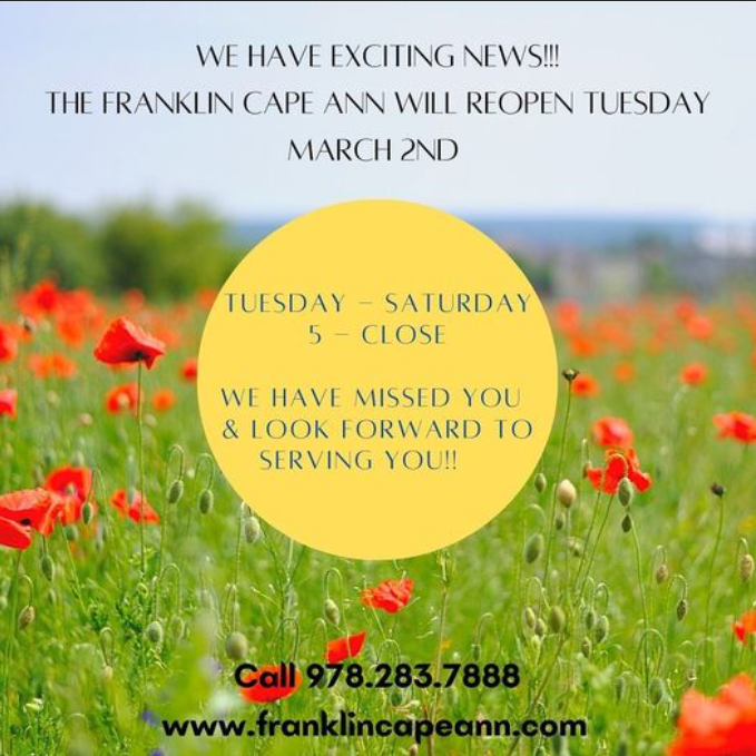 The Franklin Cape Ann Returns Tuesday March 2nd!