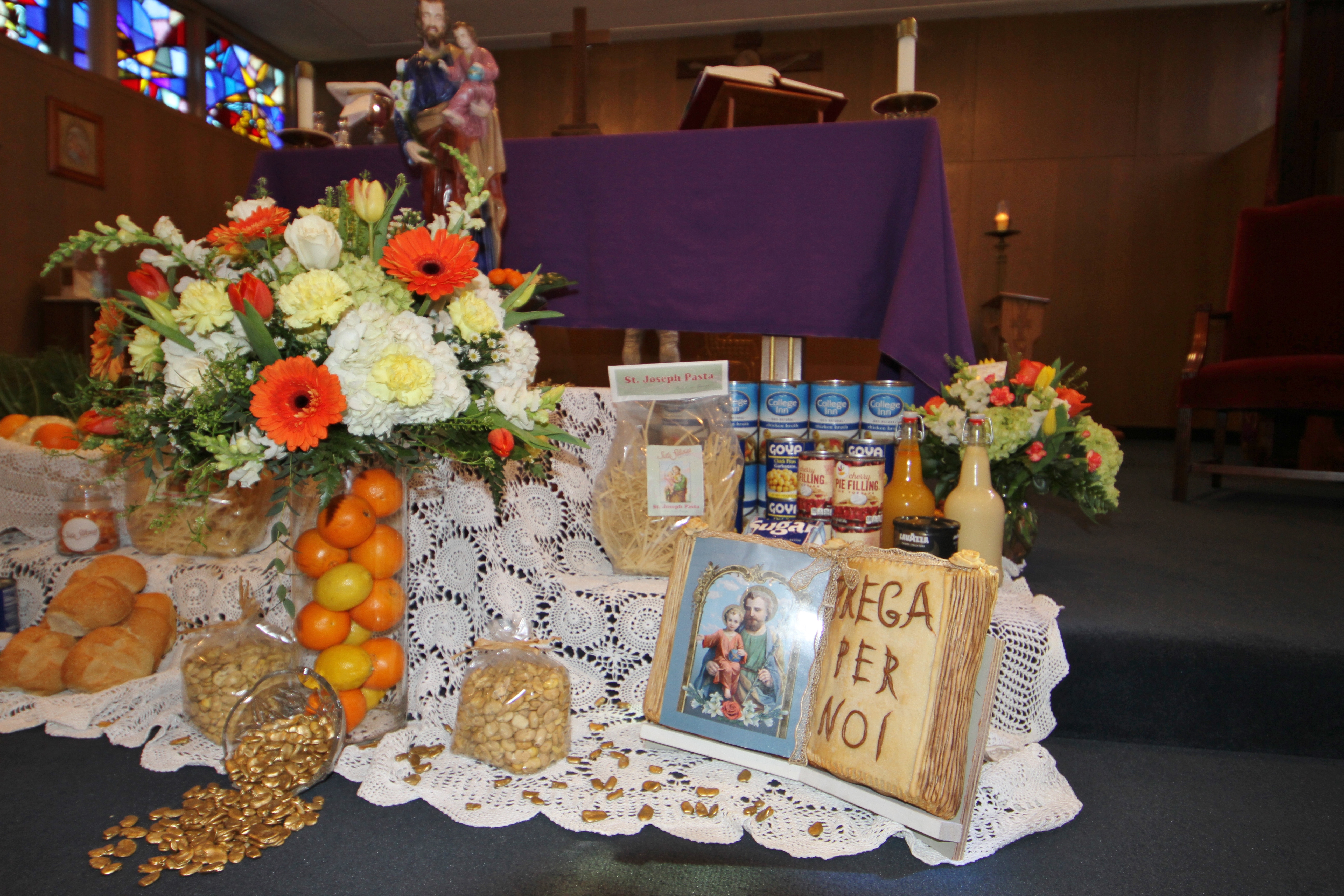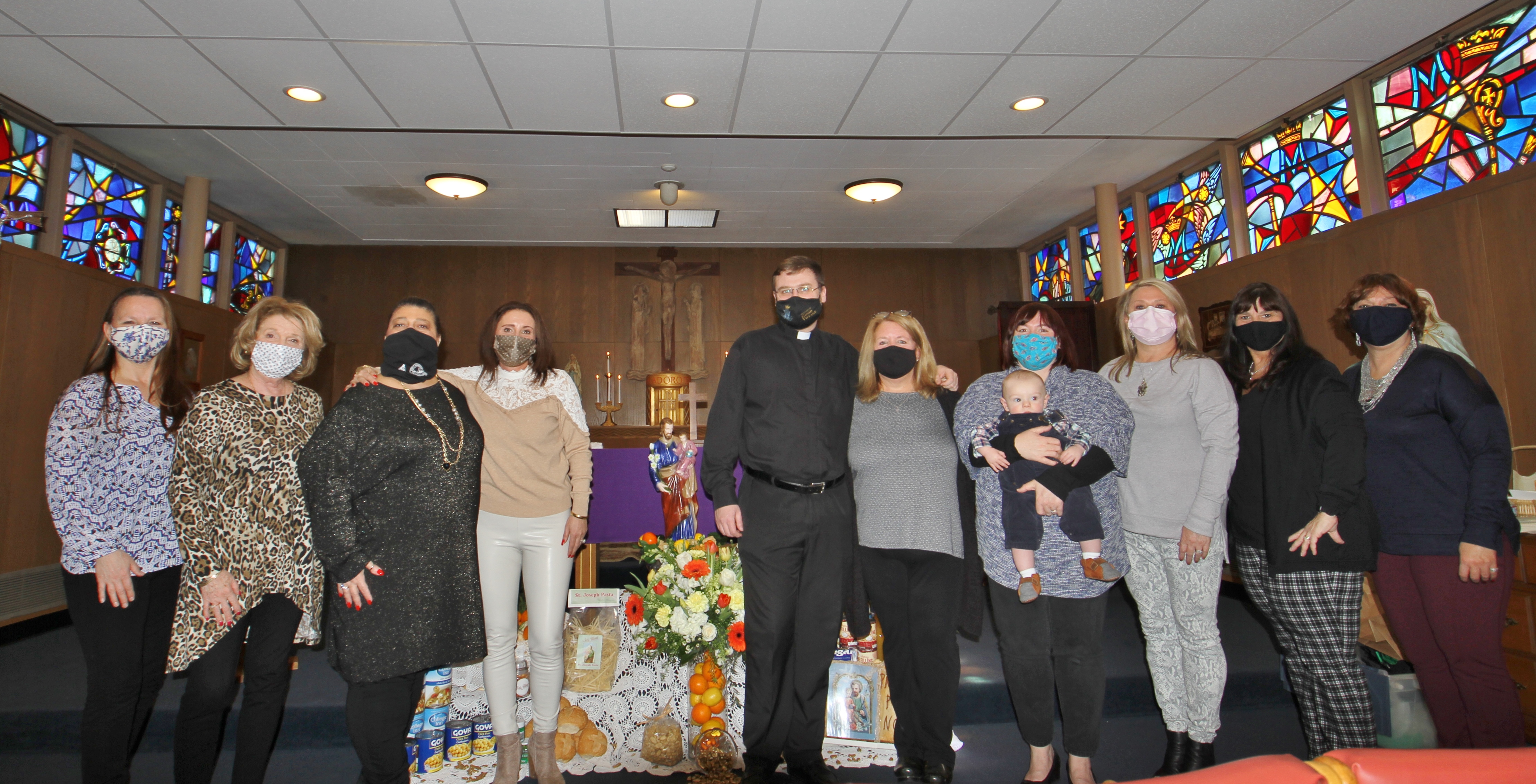 A small St. Joseph’s Novena Mass was celebrated yesterday by Fr. Benetti at the Bishop Fenwick High School Chapel to bless the annual altar for the Gloucester Novena women. I do not know most of them by name, but Felicia Ciaramitaro Mohan and her mother Pat as well as Sefatia Romeo Theken made the arrangements and attended the Mass. Several others were a big help as well, but I unfortunately do not know their names. The Mass was livestreamed and is available here on the Good Morning Gloucester blog.