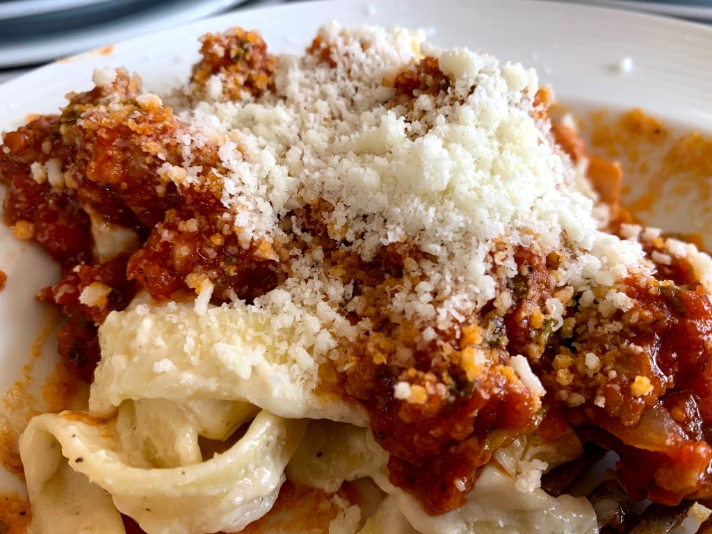 Here’s the move- You make fettuccini alfredo with fresh ricotta from Sclafani’s and then you top it with meaty Bolognese sauce and then top with super sharp grated parmesan.