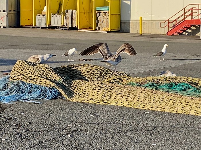 Hands down one of my favorite noises on the waterfront…these seagulls were busy finding a meal and making a ruckus. Click the link to see/hear the video.