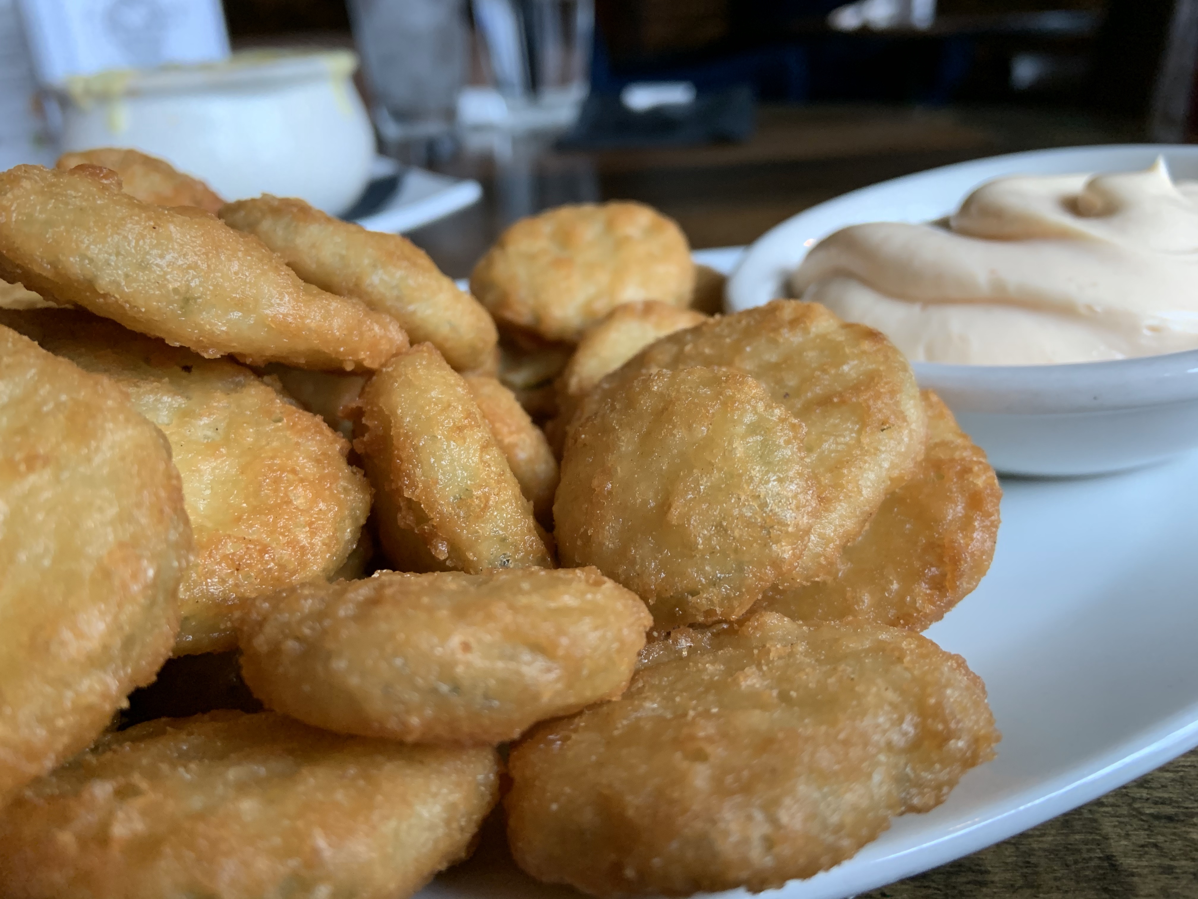 I chose a margarita with cherries added….BOY was that good! Nice and tart just the way I prefer. Our friend manager Cecilia and I are going to have a conversation about that wonderful cocktail!!! Jim ordered fried pickles and I had French Onion soup prior to our meal. The cilantro lemon chicken tacos were a FANTASTIC blend of flavors and textures. I believe it was listed as a new menu item. Jim had the Reuben sandwich. We were very happy with our meals once again. Fox Creek Tavern has not failed us once! Highly recommended, well worth the ride.