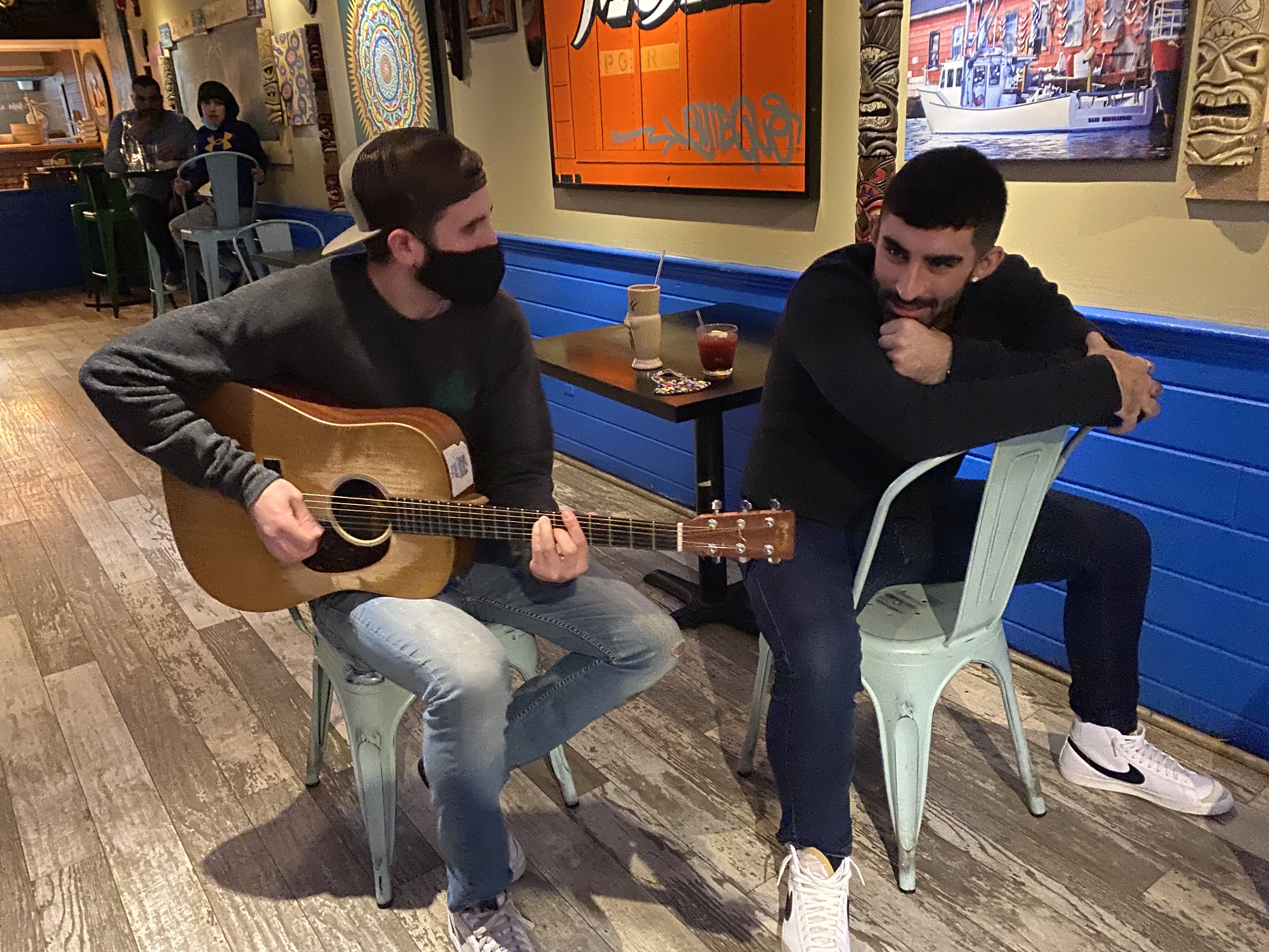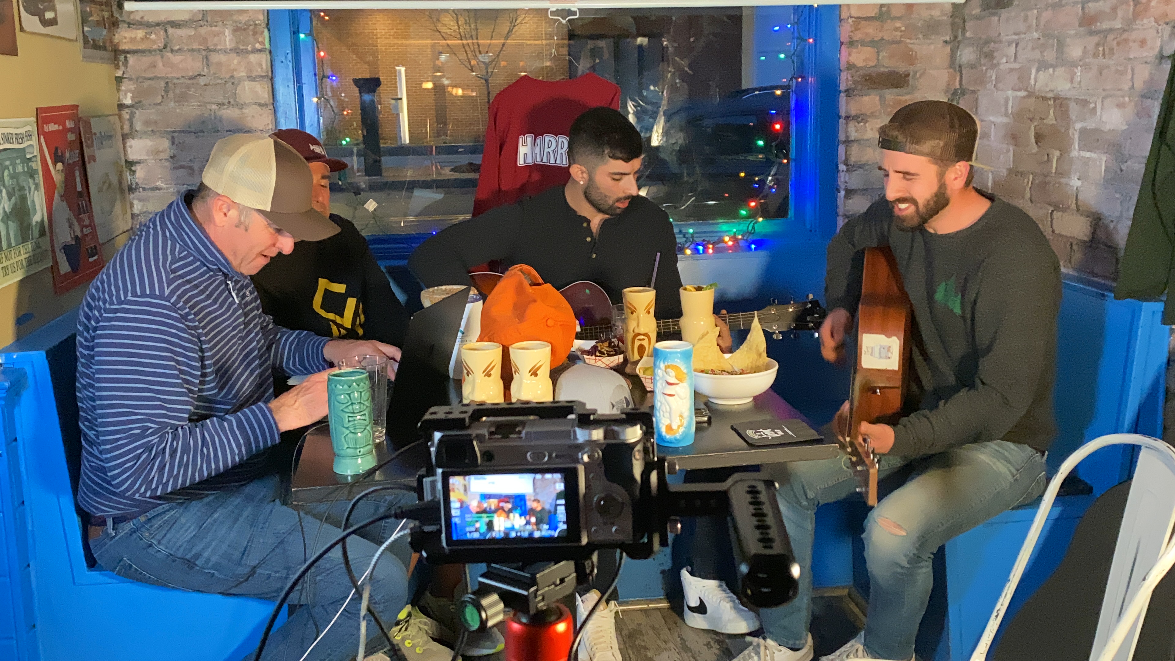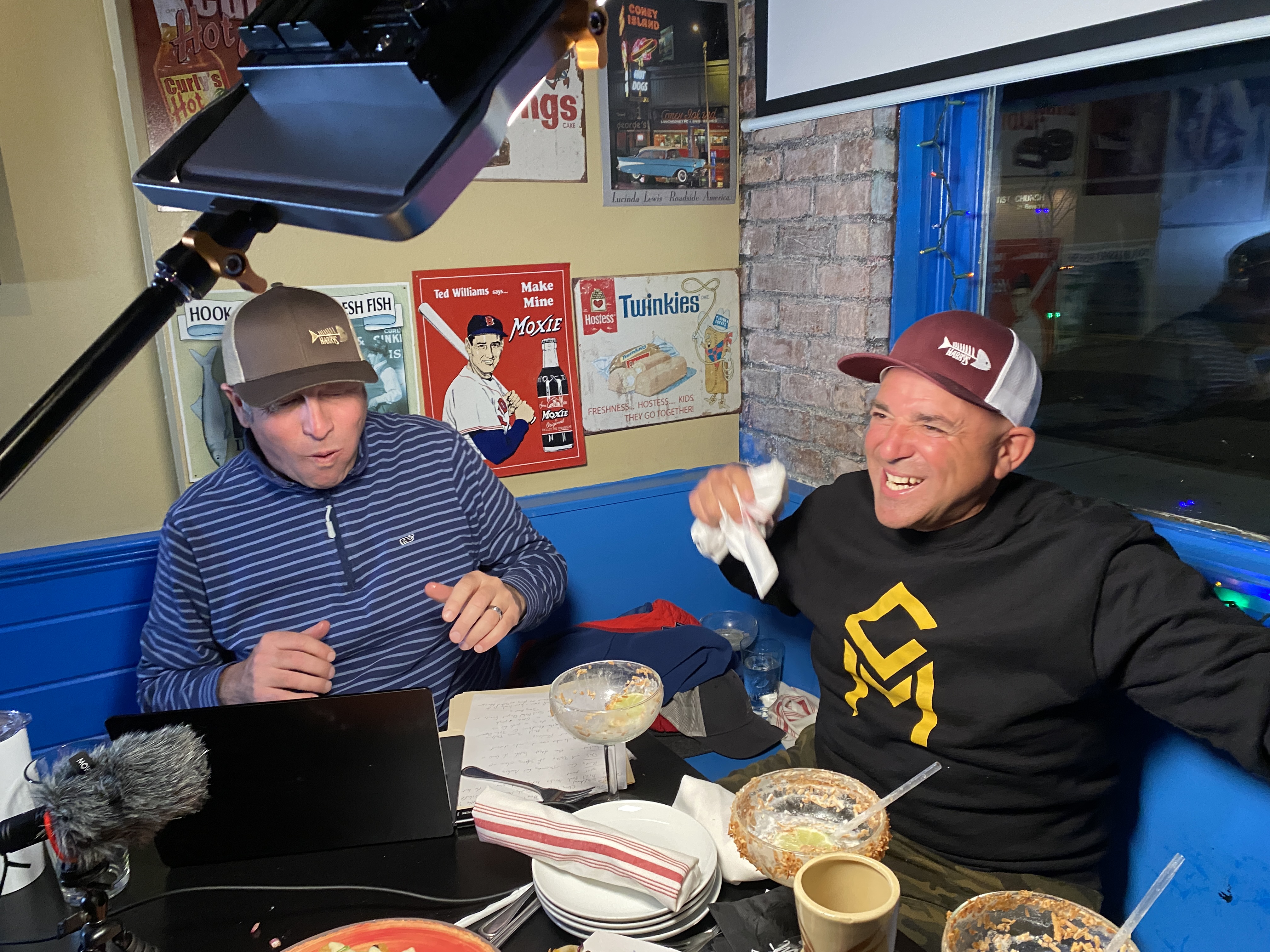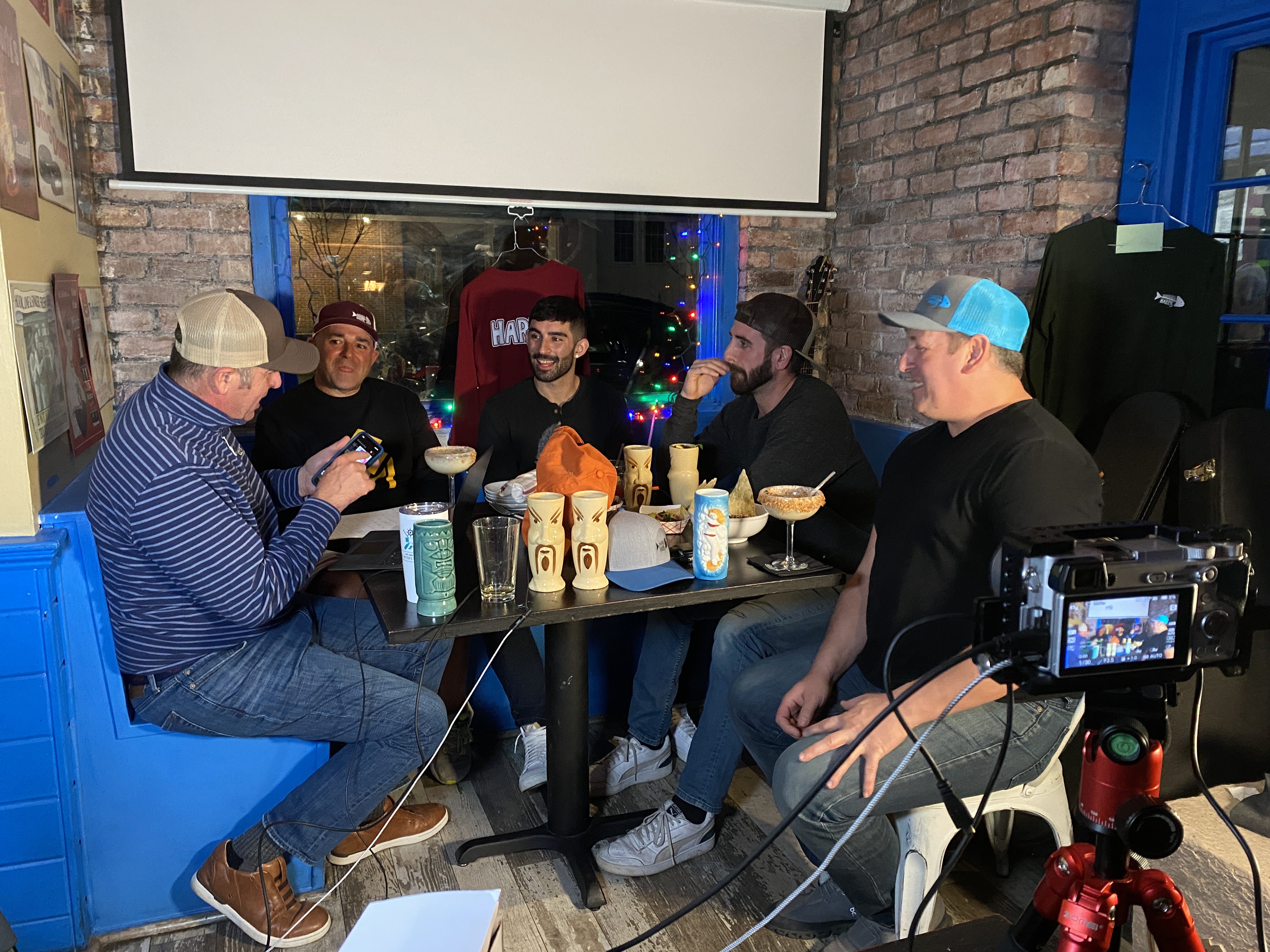 GMG had the pretty cool opportunity to sit down with the Over the Bridge (a couple of local guys who are now killing it in the music scene and on the charts) last night for a live GloucesterCast at Bonefish Harrys. I was happy to sit by the side and watch, listen, tap my foot, and enjoy one pretty epic Coconut Margarita. Henry Pariseau, owner of Bonefish Harrys also sat down with the guys and talked about the inspiration behind the restaurant, his menu, and future plans!