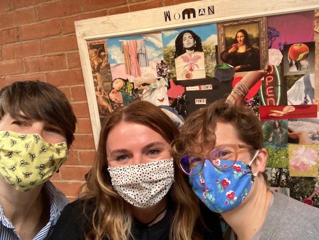 Through the Looking Glass is a mixed medium brain child of North Shore mother writers (L-R): Nancy Carolyn Kwant, Kristin Proctor, Meg Grant, and Lyn Towne-Smith (not pictured). Together they form a group called the Writing Mothers’ Workshop.