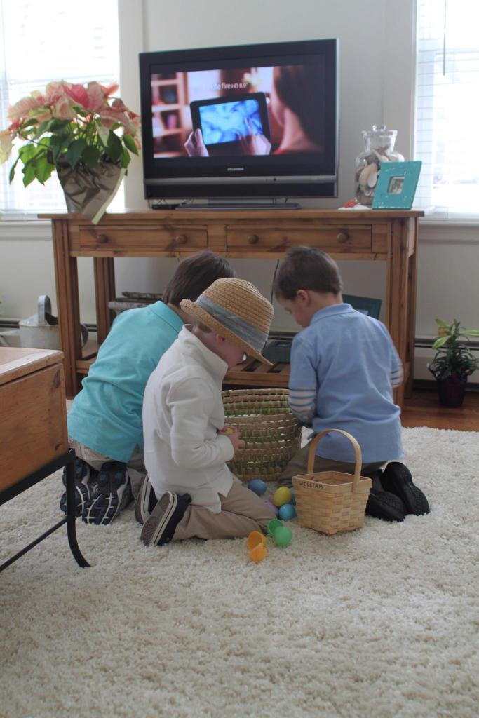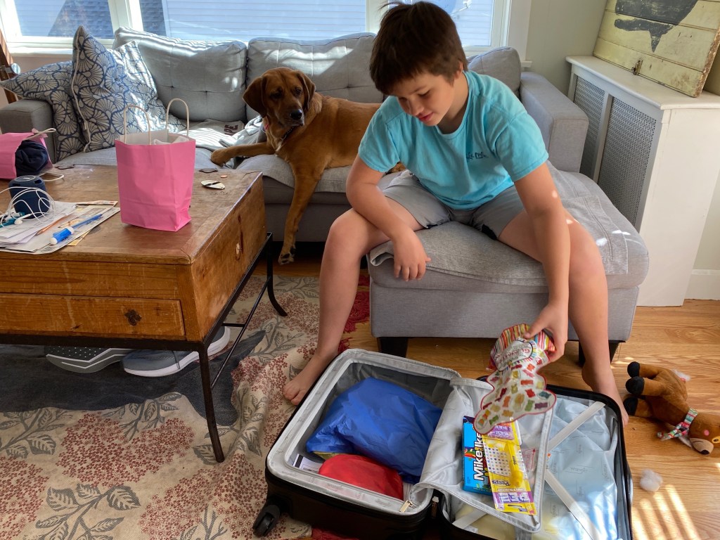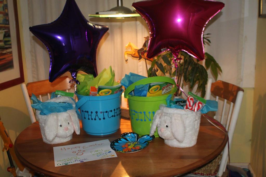 Rather than the traditional Easter baskets, I bought new suitcases for an upcoming trip. I bought bathing suits, flip flops, a couple of t-shirts, a Dunks’ gift card, some baseball stuff, and the littlest bit of candy. I wrapped their gifts in tissue paper and stuffed the little pieces of luggage. I didn’t mention putting out carrots the night before….and neither did Finn.