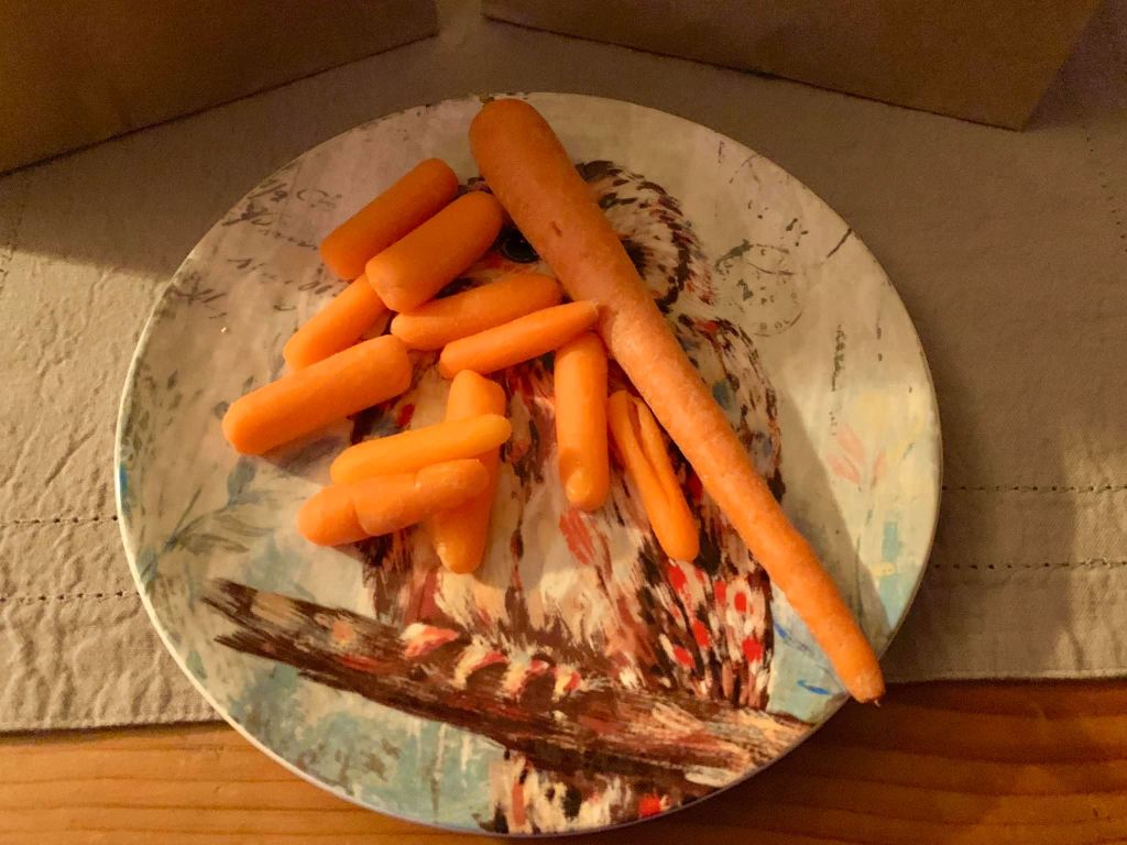 Then, before we knew it, came Easter. Last Easter Eve I kind of thought we were done. I mean we were hardcore in the throws of COVID with tons of unknowns. Easter and its gifts and traditions were kind of an after thought if I’m being honest. Then, at bedtime, the little bugger goes into the kitchen and gets all busy. I hear him, but don’t think much of it. All of a sudden he comes out ….with a plate of carrots…..