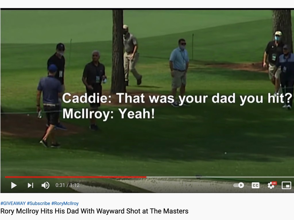 Hey, Dad, remember that time that I hit you in the leg with a wayward shot on the 7th while playing at the Masters? What are the chances?
