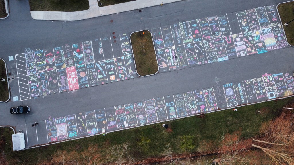 Manchester/Essex Regional High School has a pretty cool tradition of having the parents of graduating seniors decorate their children’s parking spots. Thanks to Ken Lawler and his drone we get to enjoy these sweet views from above. Congratulations to all of the seniors…especially Maddie L. And, yes, I cried a little bit when watching Ken’s video. Be sure to check out the video as well as the photos. I’m very appreciative that Ken was willing to share when asked.