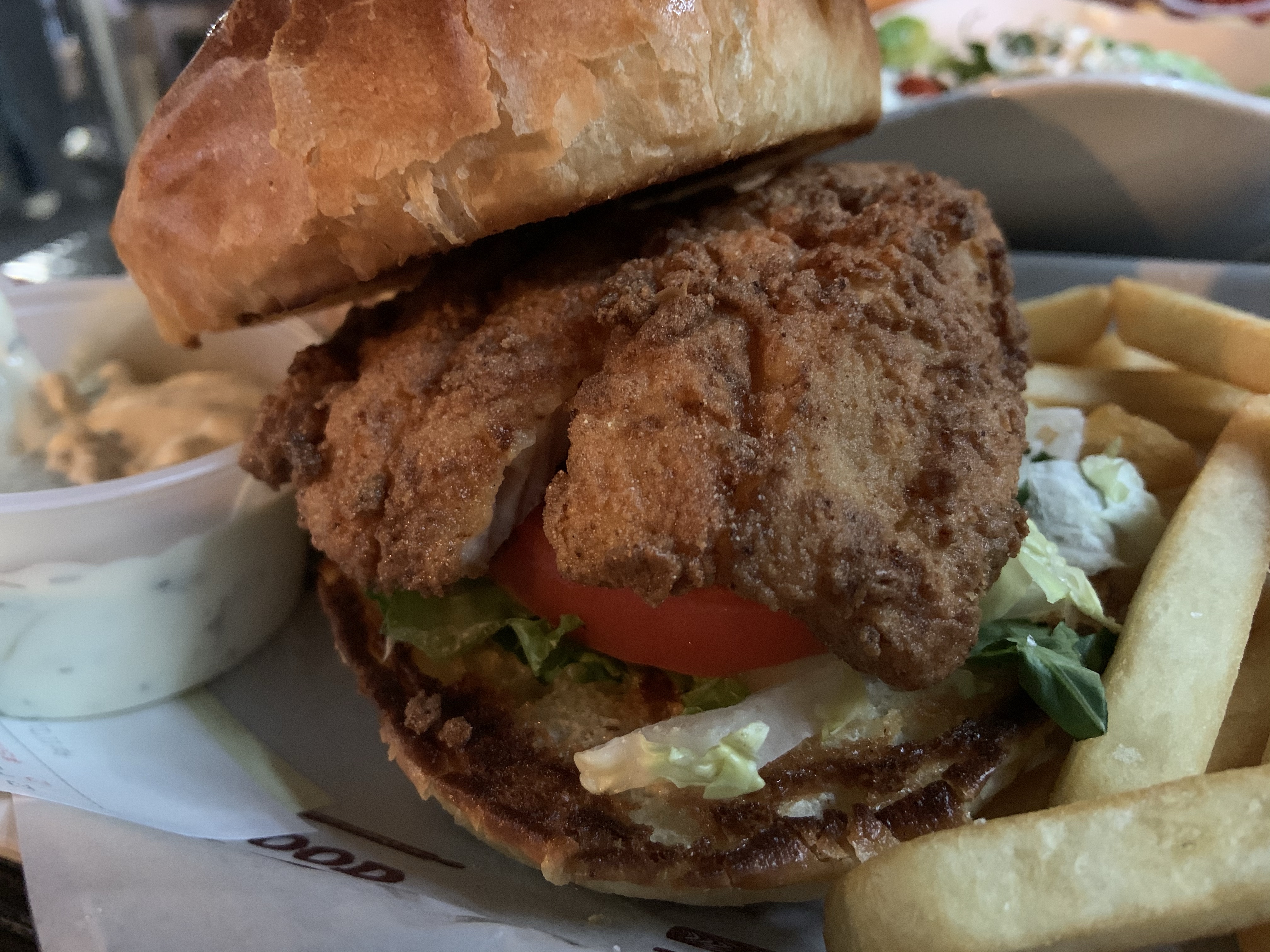 We like to wrap our weekends at favorite places so off to Minglewood on Rogers Street we went to enjoy an early dinner and wrap up a fantastic weekend. As always, the service was spot on; the food delicious and the atmosphere exactly what we wanted. We feel very safe there with distanced seating, sanitizers everywhere and masked staff. the deck was empty but it won’t be long before that’s jumping too! Jim had a cobb salad and we each had the fish sandwich. So yummy. Thank you Zach and staff for another great experience! Also, points added to our Serenitee account! Win Win.