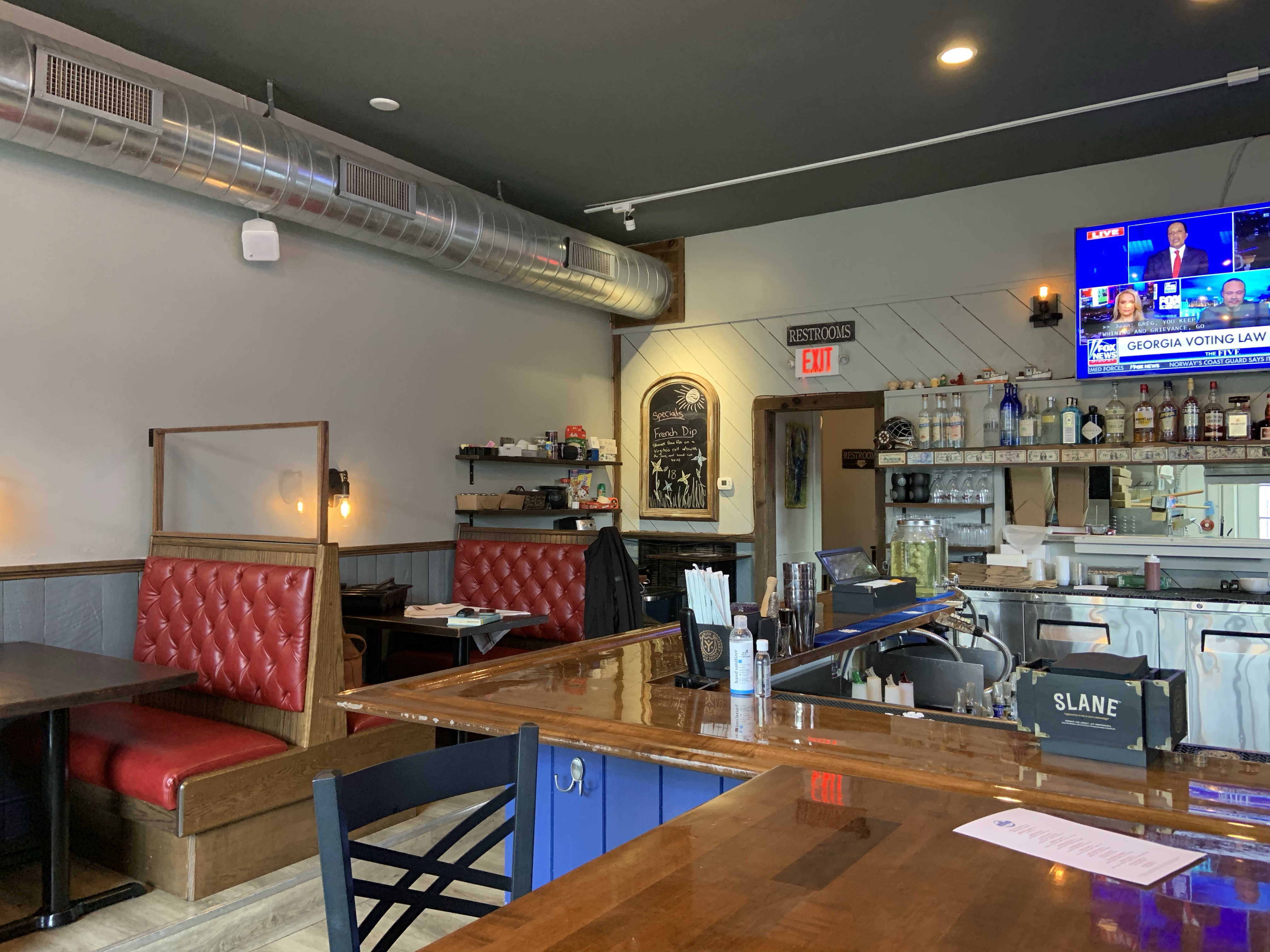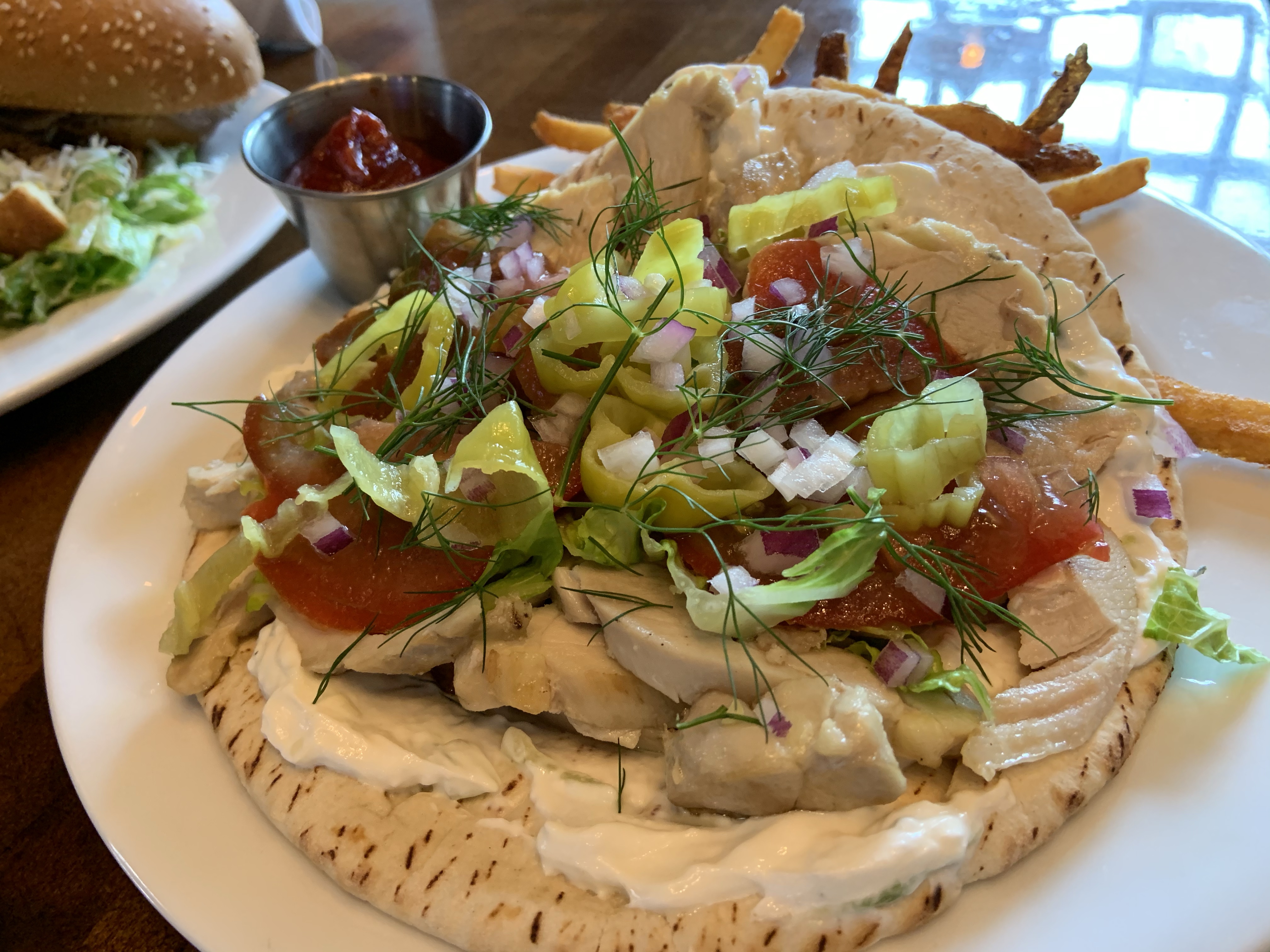 We tried the Mooring Restaurant in Manchester for dinner recently. Located on Union Street, it is a very small place with a pub-like atmosphere. The limited seating available during the pandemic allows for very few seats. The menu is small but varied and there was a daily special in addition. I had the chicken gyro and Jim had the daily special French dip which was served on a Virgilio’s roll. Jim especially enjoyed the side salad offered as a replacement for the fries. Our server, Amanda, was appropriately masked and distanced and did a great job as the only server while we were there. We might plan to return for lunch because of the pub type setting, nice and relaxed with a view of the world going by.