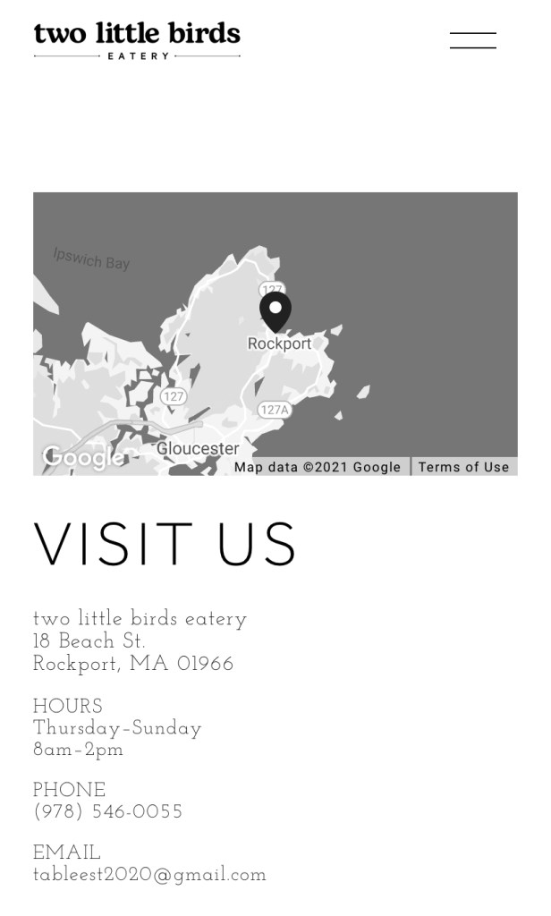 | Emerson Inn Pigeon CoveTavern | 978-546-6321 | https://www.emersoninnbythesea.com/dining/ | May 1 2021 |