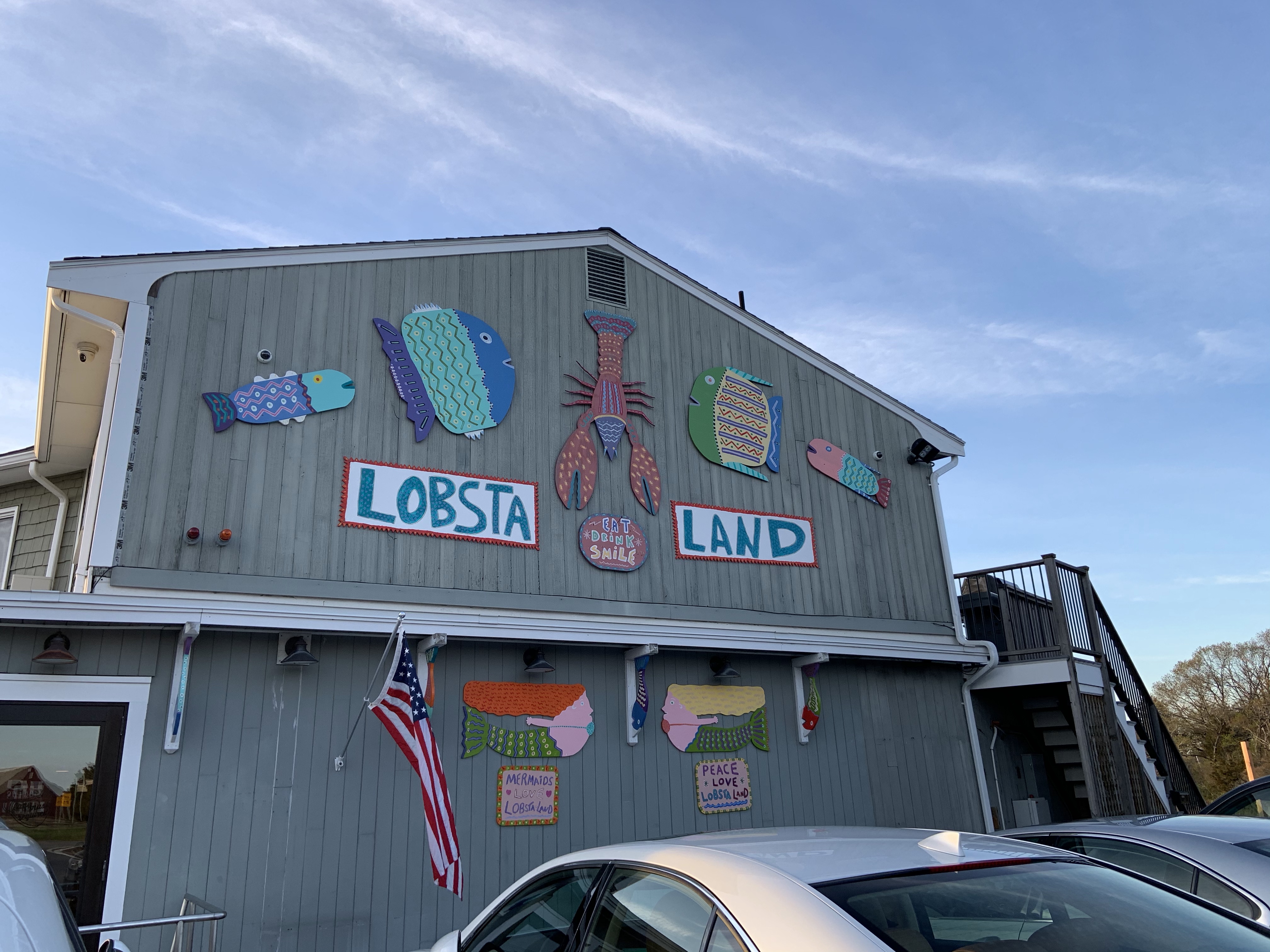 We also took note that Lobsta Land is supporting local artists. We saw a piece by Melissa Cox hanging over Jim’s head as well as one of Bex Borden’s lobster trap trees! Kudos on the added local support.