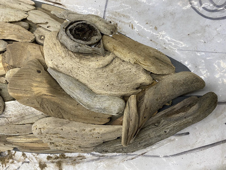 Boatbuilder Richard Honan’s driftwood assemblage, Do Fish Have Lips?, displays a marvel of craftsmanship.