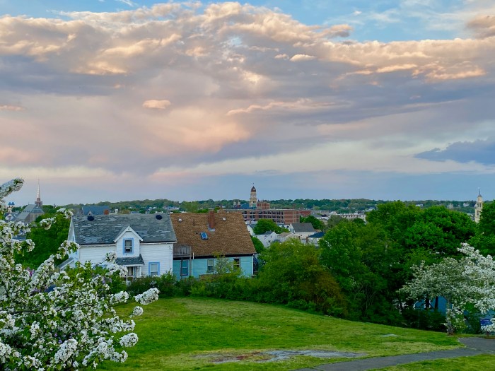 Can you name the buildings seen in this city scape view from Governor’s Park on Commonwealth Ave? The harbor view is pretty from here…albeit a little obstructed this time of year because the trees are in full bloom, but I think the view of the city is gorgeous as well.